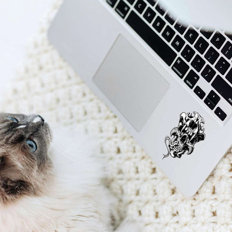 Unleash your dark side with the Skull Beast Sticker, a stunning black-and-white vinyl decal that merges gothic style with intricate artistry. Featuring sharp fangs, coiled horns, and bold detailing, this sticker makes a dramatic statement on any surface. Whether you’re decorating your car, laptop, or wall, this premium vinyl decal is built to last, resisting weather, wear, and fading. Easy to apply and remove, it leaves no sticky residue, ensuring your surfaces stay clean. Available in multiple sizes, this decal is the ultimate choice for lovers of gothic or horror-themed art looking to add a fierce and artistic edge to their belongings.