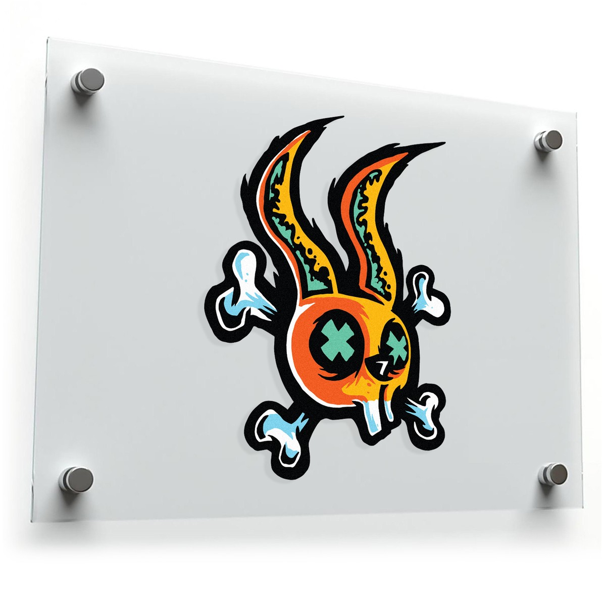 Add a bold, edgy twist to your style with this vibrant skull bunny crossbones decal. Featuring a playful yet punk-inspired design in bright orange, teal, and black, this cartoon-style sticker is perfect for cars, laptops, walls, and more. Made from high-quality vinyl, it ensures durability against weather, scratches, and fading, making it ideal for indoor or outdoor use. Its versatile design stands out as both playful and daring, perfect for those who love unique, eye-catching decor. Available in multiple size options, this sticker applies easily and removes without residue, offering a clean and stylish update to your favorite spaces.