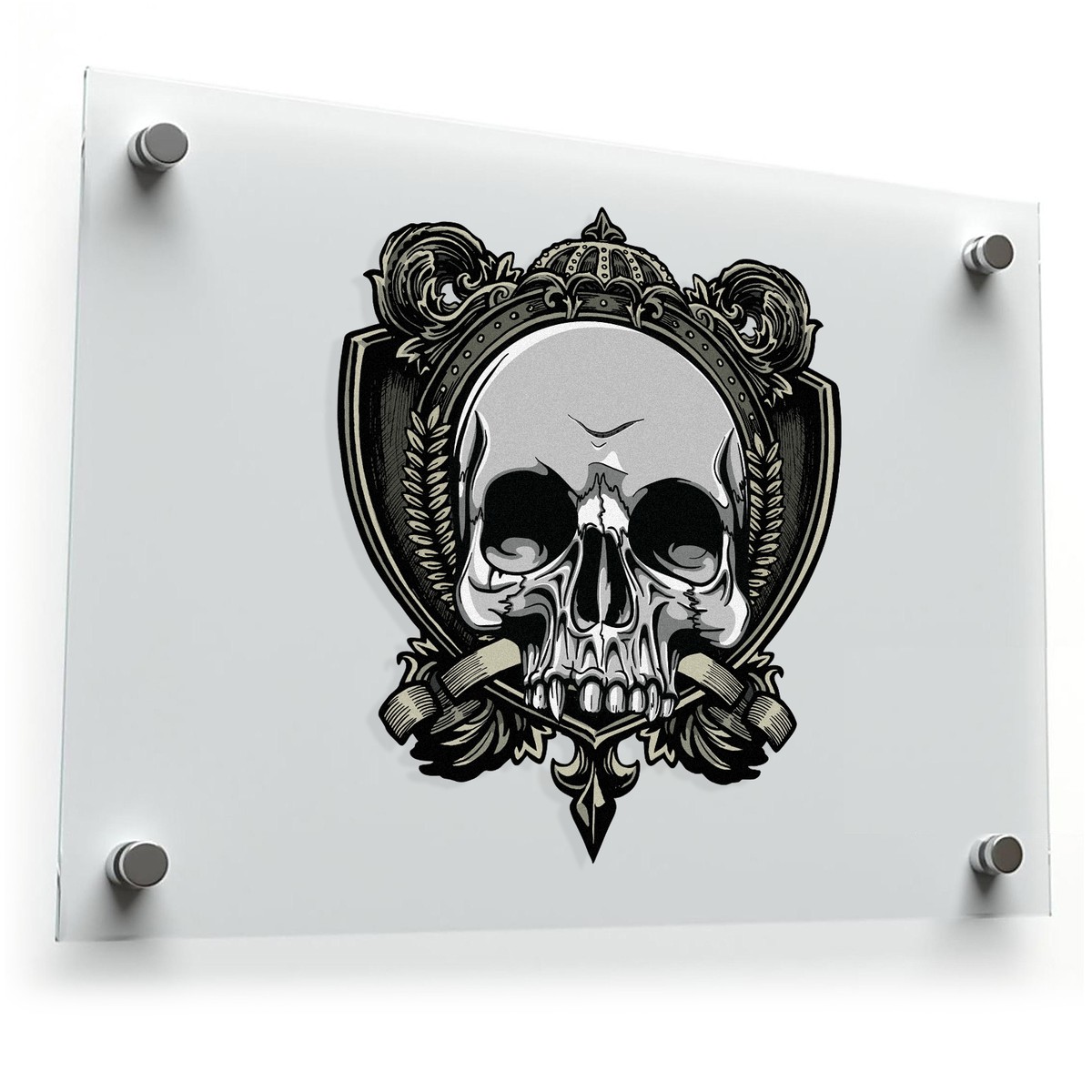🛡️ Intricate and Durable Design: The detailed crest includes a skull centerpiece framed by ornate decorations, printed in bold black and gray tones that stand out wherever applied. 🛡️