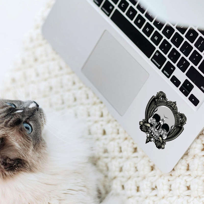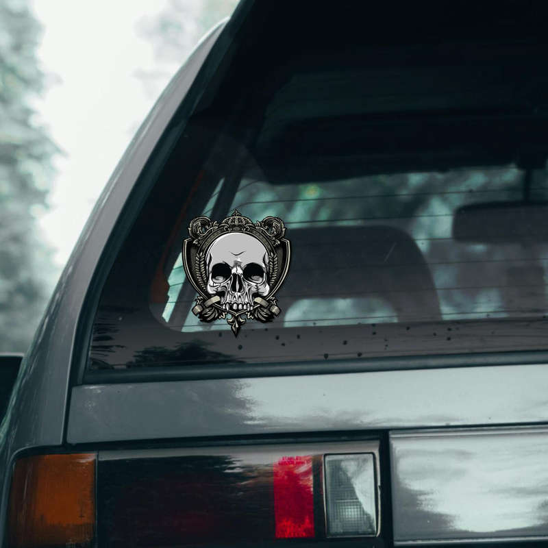 Add a bold and gothic statement to your belongings with this intricately designed skull crest vinyl sticker. Featuring a detailed skull centerpiece surrounded by ornate decorations, this decal combines dark elegance with edgy style. The black and gray color scheme ensures it stands out on any surface, whether it’s your car, laptop, water bottle, or home decor. Made from durable, waterproof vinyl, this sticker is built to withstand outdoor conditions without fading or peeling. Its easy application and residue-free removal make it the perfect way to showcase your love for gothic or alternative aesthetics. Available in multiple size options, it’s a versatile and unique addition to any collection.