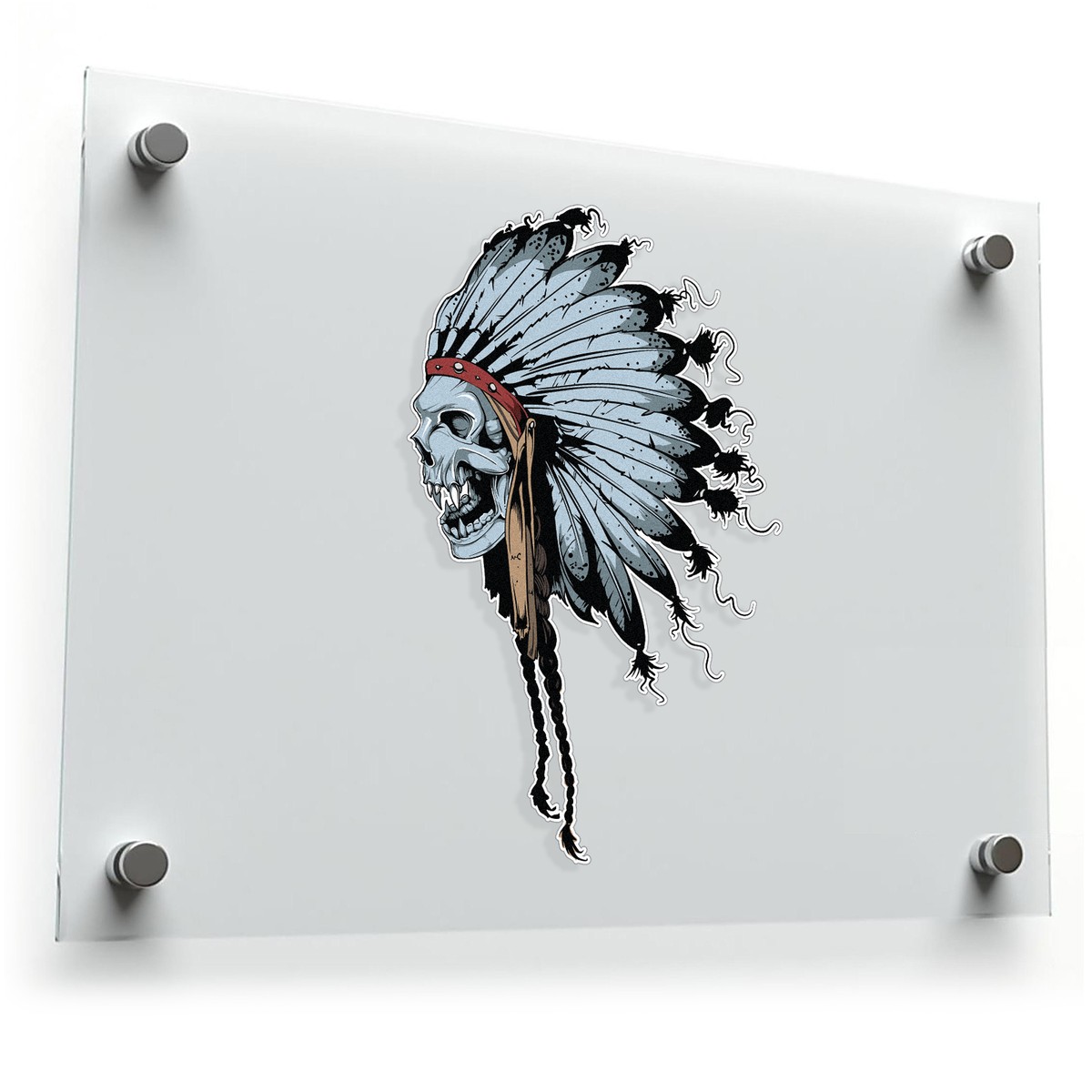 Make a bold statement with this skull headdress sticker, featuring a striking design of a skull adorned with a detailed feathered headdress. Perfect for fans of gothic and tribal-inspired artwork, this durable vinyl decal can be applied to a variety of surfaces, including cars, helmets, and laptops. Designed to withstand outdoor conditions, this weatherproof sticker maintains its vivid details and colors over time. With easy application and removal, this decal offers a unique way to personalize your gear while showcasing your edgy style. Available in multiple sizes for added versatility.