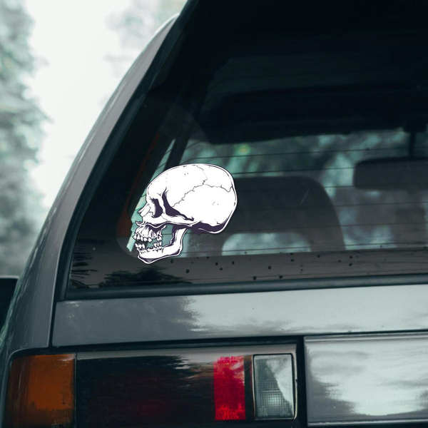 Skull Profile Sticker – Intricate Black💀 Intricate Skull Design: Featuring a detailed black and white anatomical skull in profile, this sticker offers a bold and striking design that’s perfect for gothic, edgy, or minimalist styles. 💀