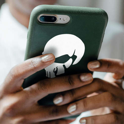 Make a bold statement with this striking skull silhouette sticker, crafted from high-quality, weatherproof vinyl. Whether for your car, laptop, or walls, this edgy design adds a rebellious flair to any surface. With its easy peel-and-stick application and UV-resistant material, this decal maintains its vivid, dark appearance over time, no matter where you place it. The durable construction ensures the skull sticker withstands both indoor and outdoor elements, making it a lasting addition to your personal style.