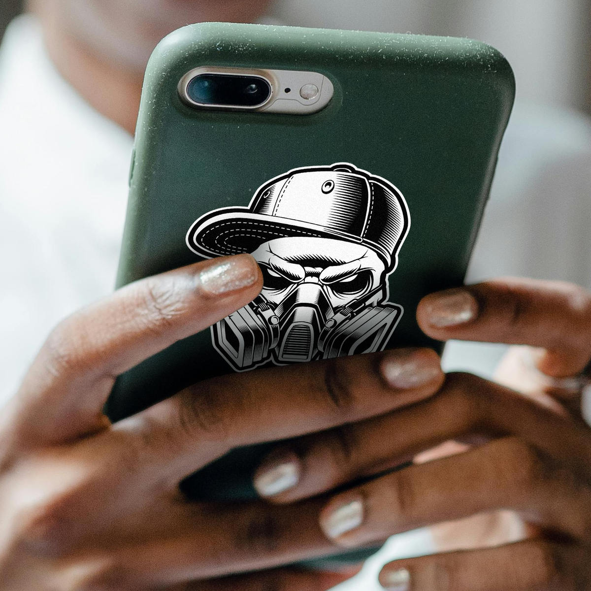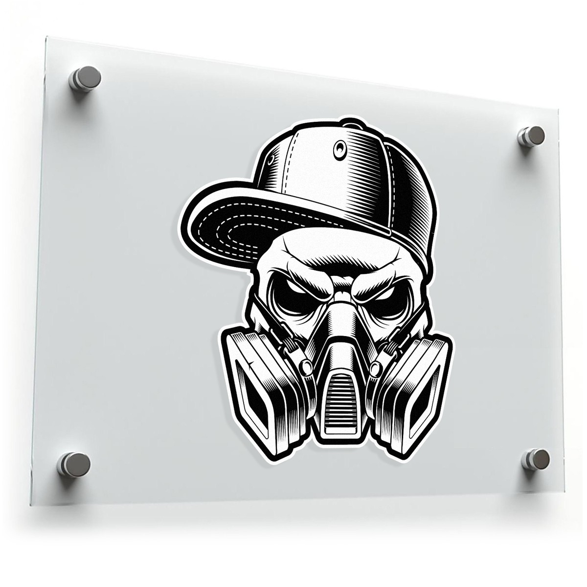 Make a bold statement with this Skull and Gas Mask Vinyl Sticker. Featuring a sharp black and white design, this edgy, urban decal is perfect for cars, motorcycles, laptops, and more. Crafted from durable, waterproof vinyl, this sticker is built to last through all weather conditions. Its removable design ensures no damage or residue is left behind, allowing you to change up your look whenever you want. Available in multiple size options, this decal is perfect for those who want to add a rebellious flair to their personal style.