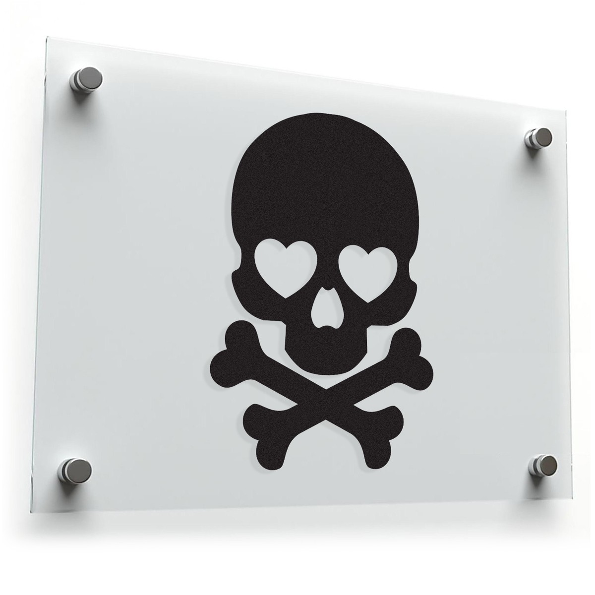 Skull with Heart Eyes Sticker 💀 Unique Skull Design: Add a twist to your decor with this bold skull sticker, featuring a striking black silhouette with heart-shaped eyes for a fun and edgy vibe. 💀