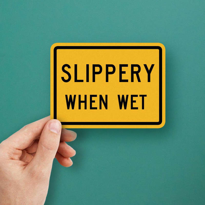 Enhance safety and hazard awareness with this durable “Slippery When Wet” sticker. Featuring a vibrant yellow background and bold black text, this vinyl decal provides clear warnings for slippery conditions, ensuring visibility in hazardous areas. Made from weatherproof and fade-resistant vinyl, it offers long-lasting durability for indoor or outdoor use. Perfect for roadways, construction sites, parking areas, or workplace hazards, this easy-to-apply sticker is an essential tool for safety management by municipalities, construction crews, or facility managers. Available in multiple sizes, this professional-grade decal promotes safety and reduces risk in any environment.