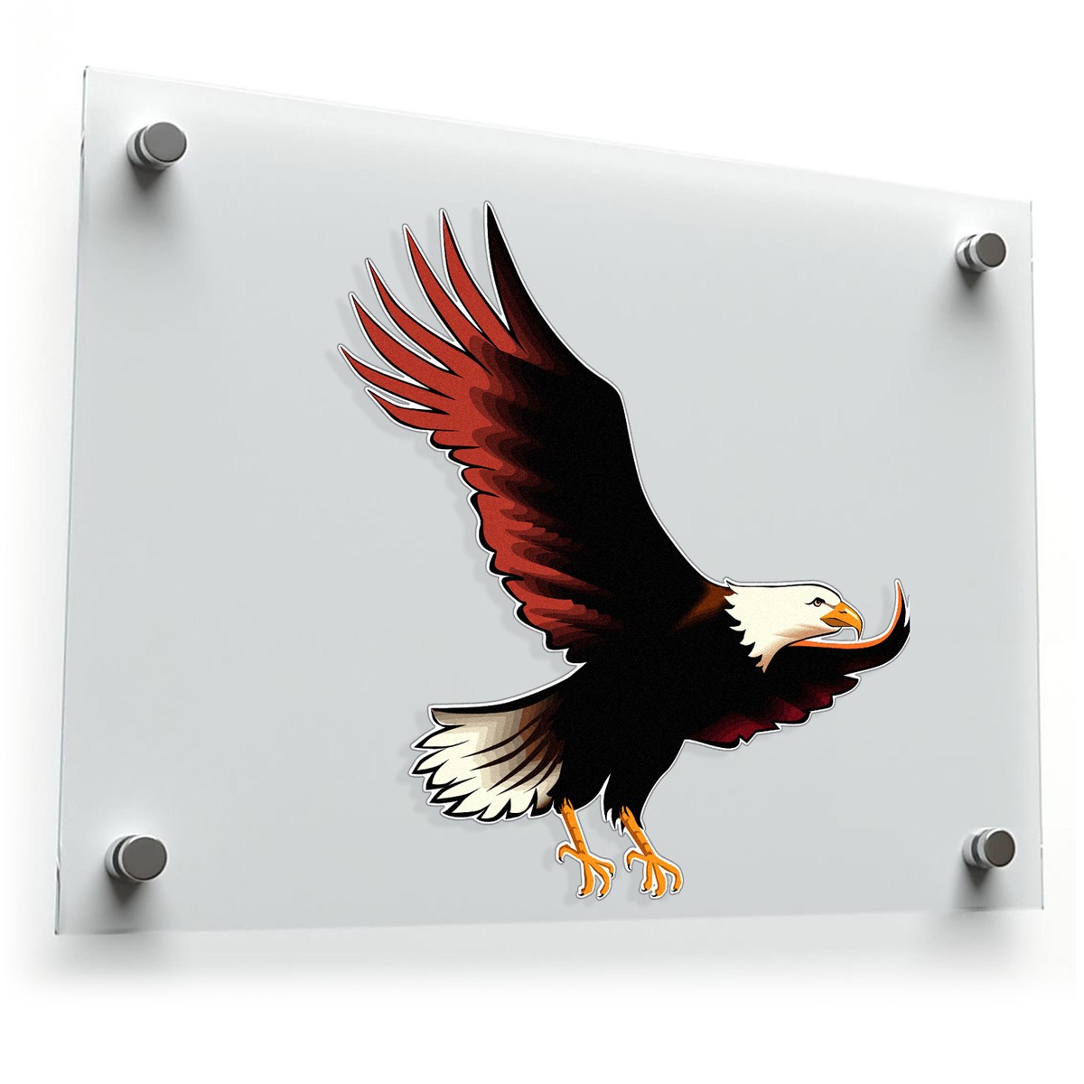 Showcase your love for freedom and wildlife with this soaring bald eagle sticker, a stunning vinyl decal featuring bold red, black, and white colors. Designed with meticulous detail, this majestic eagle in flight brings a touch of patriotism and strength to your laptops, car windows, or outdoor gear. Made from weatherproof vinyl, this durable sticker is perfect for both indoor and outdoor use, ensuring vibrant colors and sharp details that last. Whether you’re decorating for a patriotic theme or simply love wildlife-inspired art, this sticker is a bold and timeless addition. Available in multiple sizes, it’s also a fantastic gift for eagle enthusiasts or proud patriots.