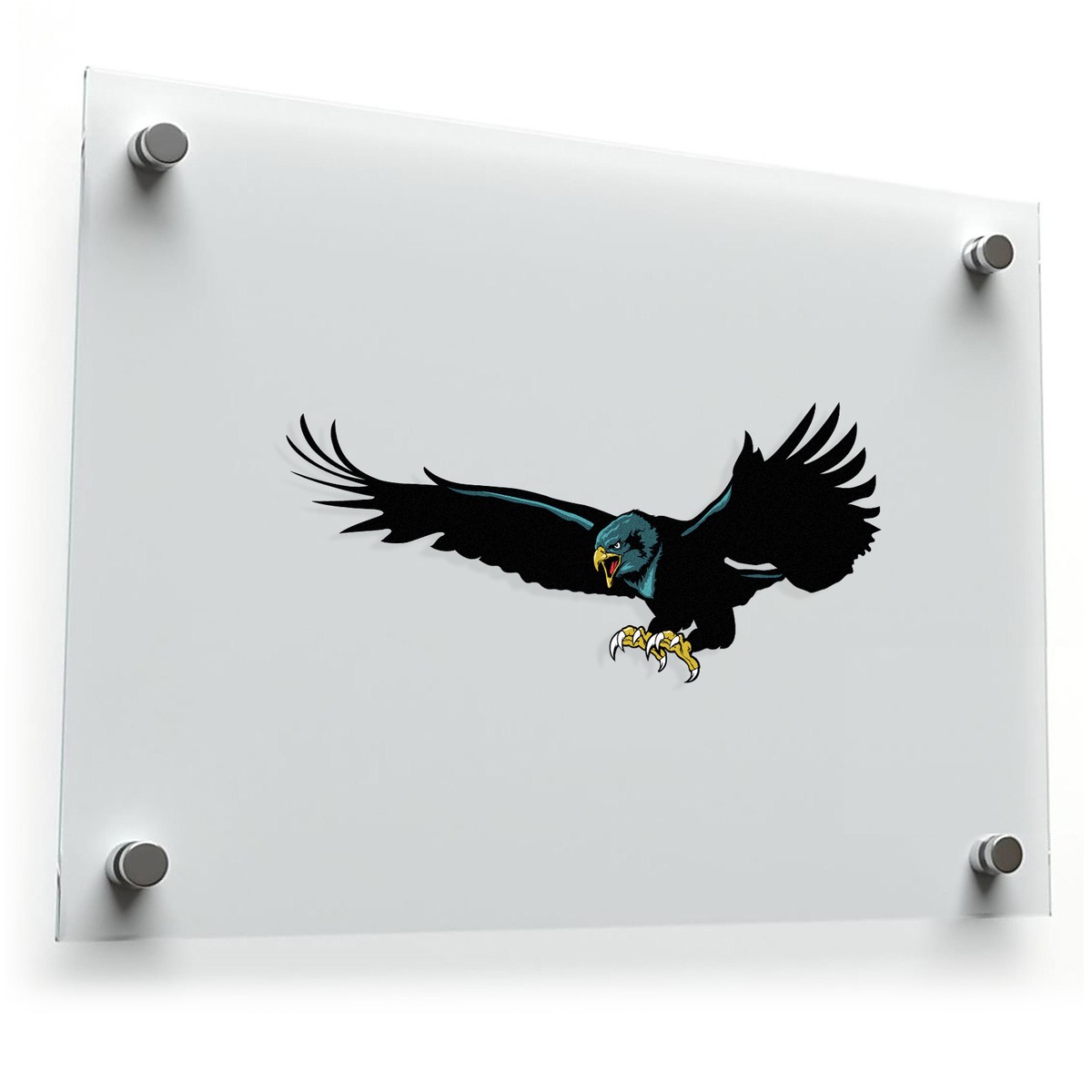 Capture the power and grace of a bird of prey with this soaring black eagle sticker. Showcasing a bold black eagle in mid-flight with an impressive wingspan, sharp talons, and hints of blue and gold accents, this decal delivers a striking and dramatic aesthetic. Made from durable vinyl, it resists fading and peeling, ensuring a long-lasting finish that’s suitable for both indoor and outdoor use. Whether you want to personalize your car, laptop, wall, or water bottle, this sticker applies easily and stays securely in place. Available in multiple sizes, it’s a perfect way to showcase your love for wildlife and bold designs.