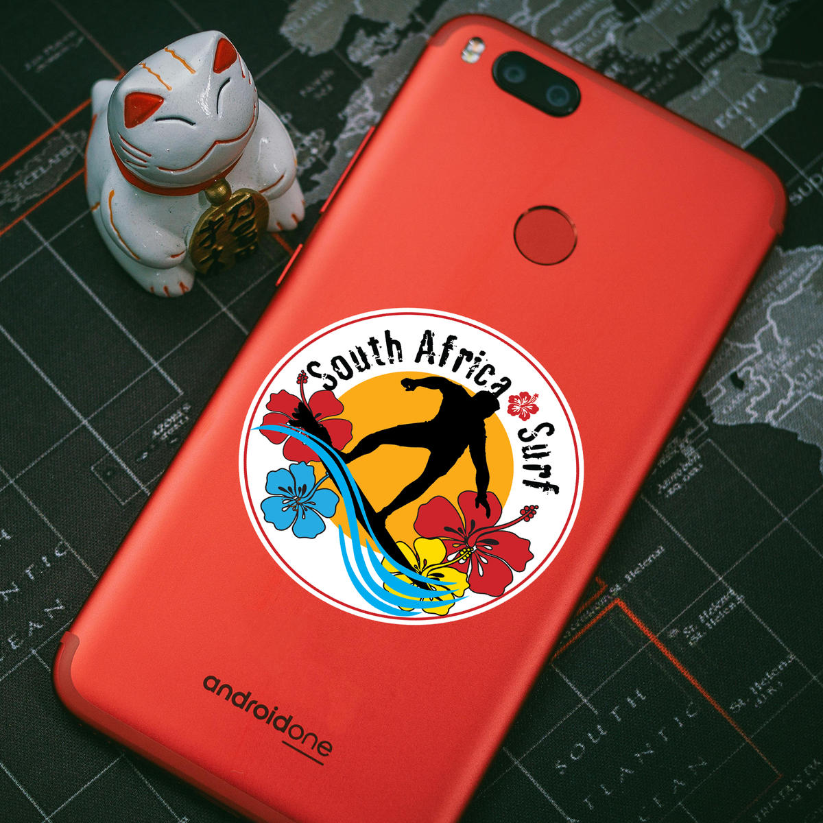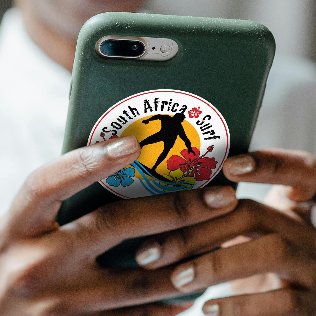Bring a splash of color and surf culture to your space with this vibrant “South Africa Surf” sticker. Featuring a bold surfer silhouette and tropical hibiscus flowers, this vinyl decal is perfect for cars, laptops, or even surfboards. Available in three sizes, it’s easy to apply and remove without leaving residue behind. Made from durable, weather-resistant vinyl, this sticker is ideal for both indoor and outdoor use, ensuring long-lasting color and quality. Whether you’re a surfer, traveler, or just love tropical designs, this sticker is a fun and stylish addition to your collection.