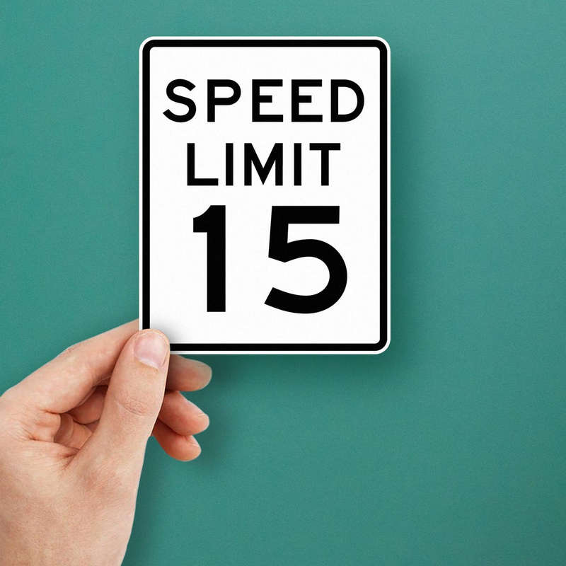 Enhance road safety with this Speed Limit 15 Sticker, designed with bold black text on a crisp white background for maximum visibility. Ideal for use on signposts, vehicles, or parking lots, this vinyl decal ensures clear communication of speed regulations in both indoor and outdoor environments. Made from durable, weather-resistant materials, it resists fading and peeling for long-term reliability. Easy to apply and remove without leaving residue, this sticker is a practical solution for temporary or permanent use. Available in multiple sizes, it combines functionality and professionalism, making it a valuable addition to any safety signage collection.