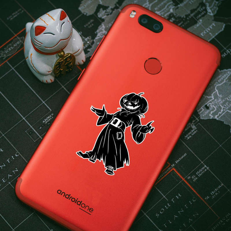 Spooky Pumpkin Head Sticker 🎃 Spooky Halloween Vibes: Add a haunting touch to your space with this eerie pumpkin head decal, featuring a sinister jack-o’-lantern face and ragged cloak design. A perfect Halloween decoration! 🎃