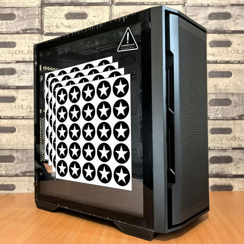 Add a bold touch to your personal space with this set of 3 sheets of star circle vinyl stickers. These black and white star decals are perfect for decorating laptops, notebooks, walls, and more, offering a modern, eye-catching design. Made from durable vinyl, these stickers are built to last, resisting wear and tear while remaining easy to apply and remove without leaving residue. Available in multiple size options, they provide a versatile solution for both small accents and larger creative projects, making them ideal for DIY enthusiasts and decorators alike.