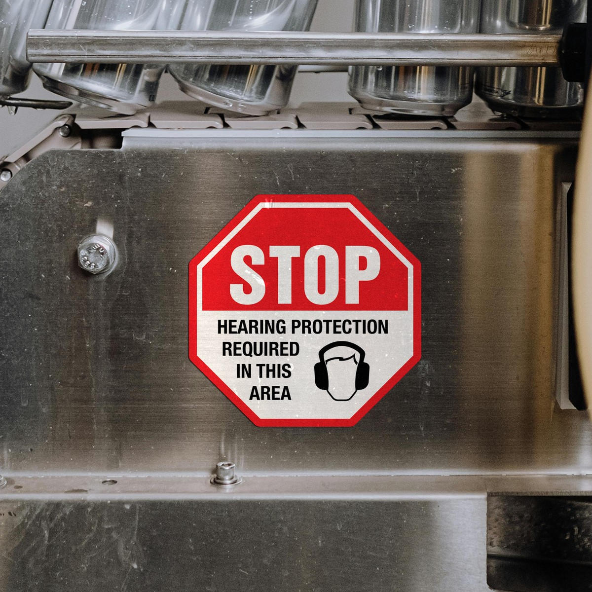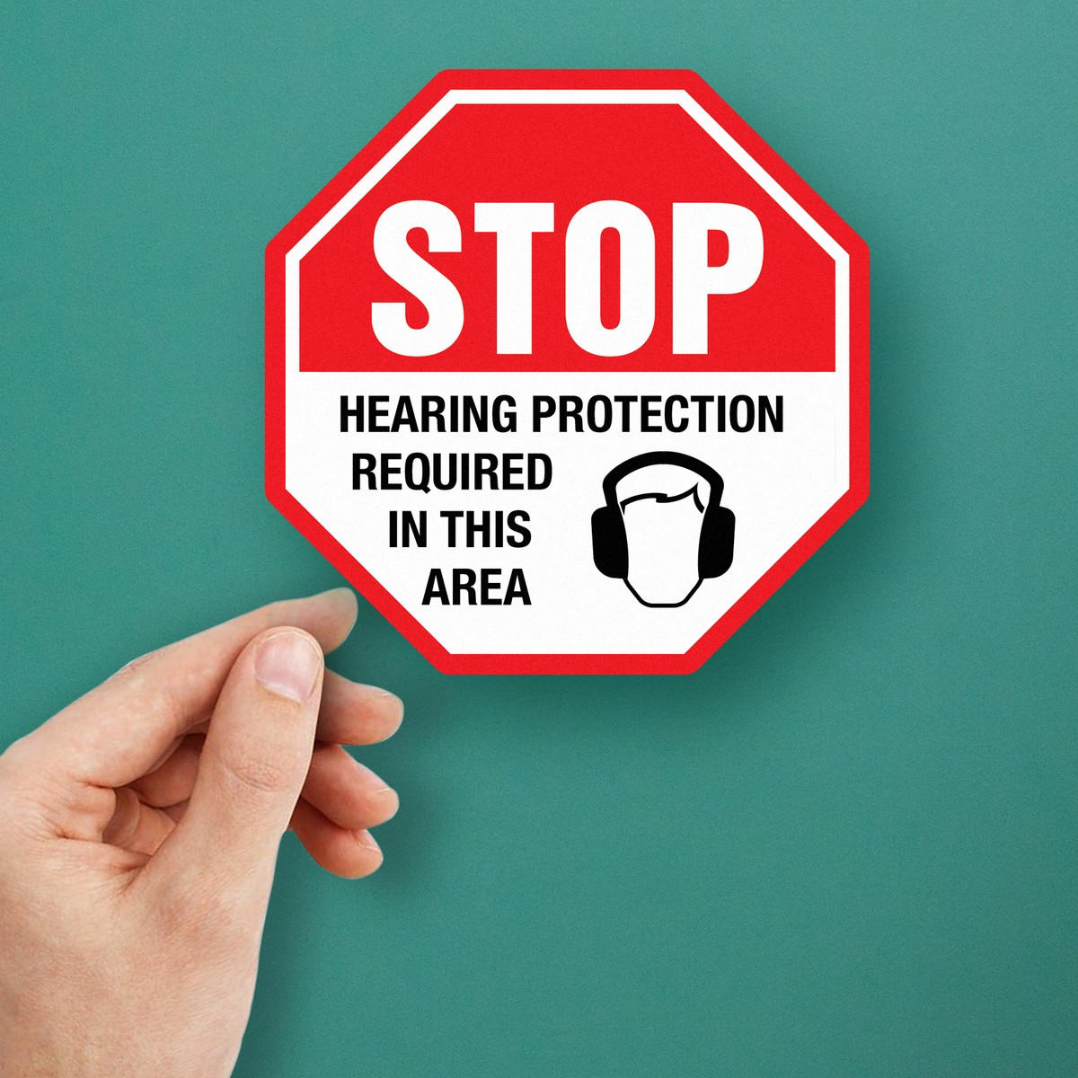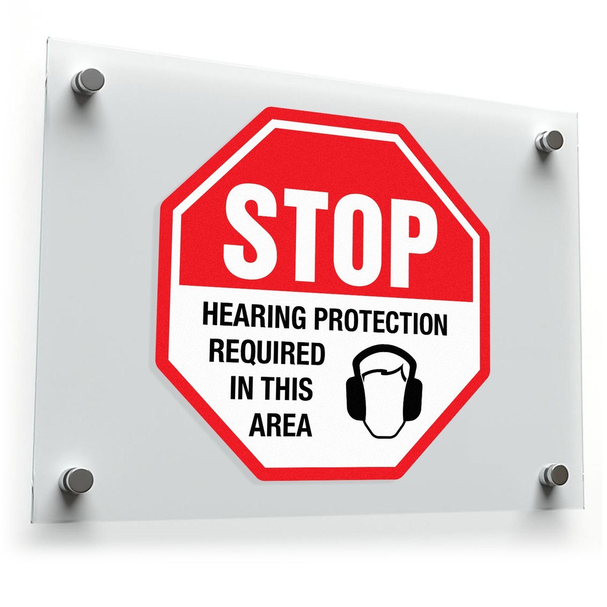Enhance workplace safety with this “STOP Hearing Protection Required” vinyl decal. Designed for industrial settings, this bold red stop sign decal clearly communicates the need for hearing protection in loud areas. Made from durable vinyl, it is built to withstand harsh conditions in factories, construction sites, labs, and more. The easy peel-and-stick application allows you to quickly place it on walls, doors, or machinery to ensure visibility and compliance. Available in multiple size options, this safety decal is an essential addition to any workplace focused on protecting workers from noise-related hazards.