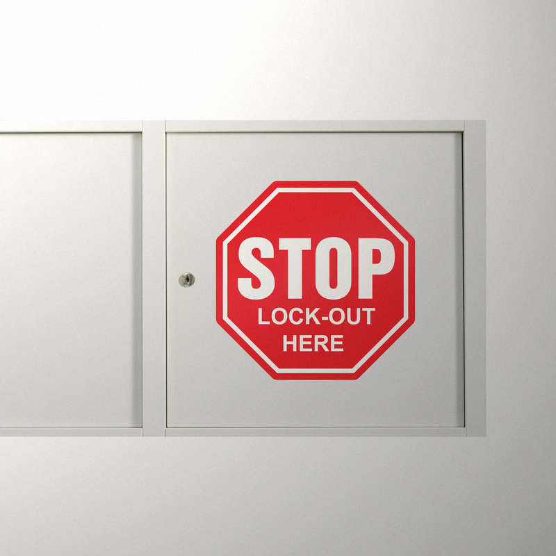 Stop Lock🛑 Critical Lockout Reminder: This “Stop Lock-Out Here” sticker ensures visibility and promotes adherence to lockout procedures for workplace safety and compliance. 🛑