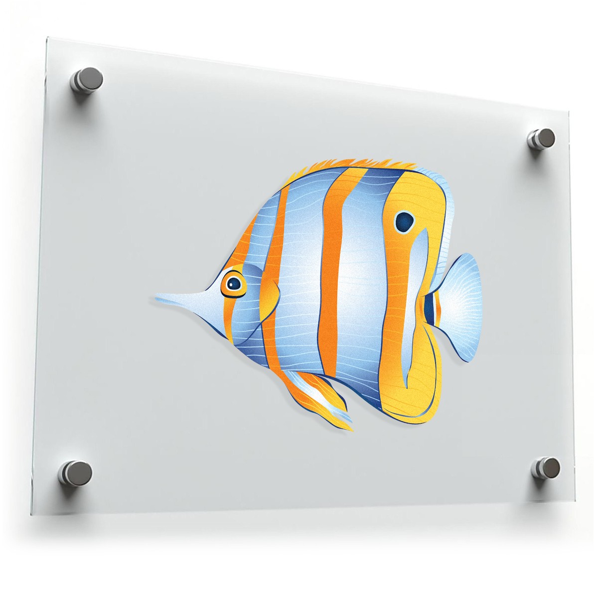 Dive into vibrant decor with this striped butterflyfish wall decal, a stunning representation of tropical marine life. Featuring lifelike colors and detailed stripes of blue, yellow, and orange, this high-quality vinyl sticker transforms any room into an underwater paradise. Perfect for bathrooms, living rooms, or kid’s spaces, this decal offers long-lasting durability, resisting peeling and fading. With 20 size options available, it’s versatile enough for bold statement pieces or smaller accents. Easy to apply and remove, this tropical fish decal is the perfect way to bring a splash of oceanic charm to your home or office.