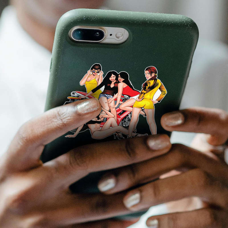 Add a retro flair to your belongings with this vibrant pin-up girl and motorcycle sticker. Featuring bold colors and detailed artwork of a sleek motorcycle surrounded by stylized pin-up girls, this decal is perfect for cars, laptops, water bottles, and other accessories. Crafted from durable and waterproof materials, it resists wear and maintains its vivid design over time. Whether youโre a fan of vintage aesthetics or motorcycles, this sticker is a stylish way to showcase your personality. Available in multiple size options, itโs perfect for adding a bold touch to your collection.