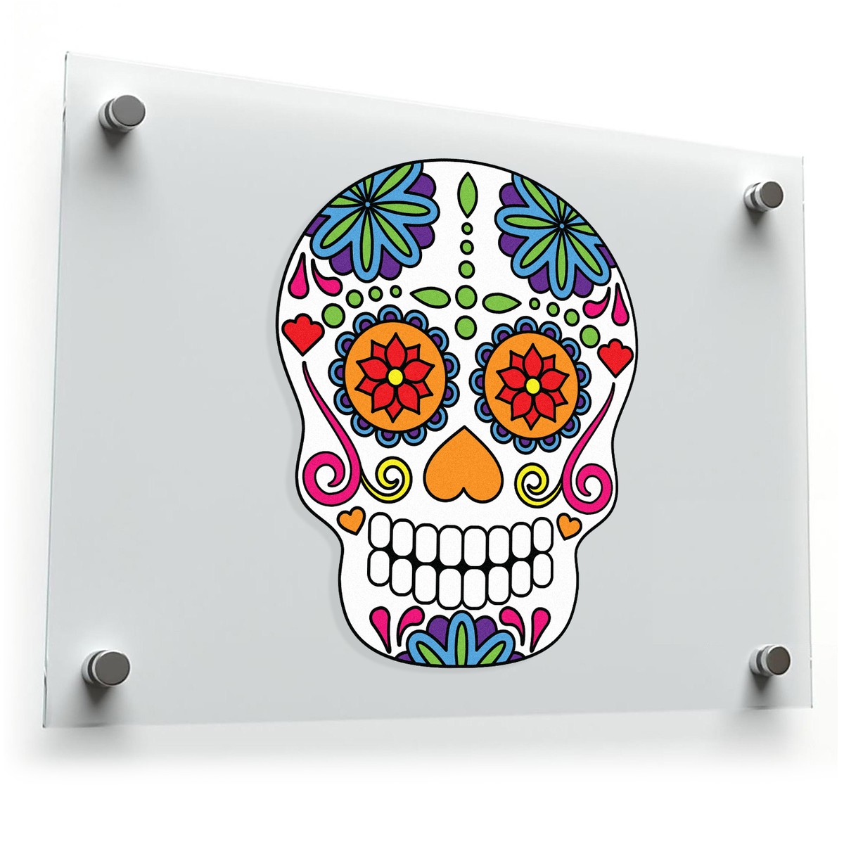 Brighten up your space with this vibrant sugar skull sticker, inspired by the Day of the Dead tradition. Featuring intricate floral patterns and bold, festive colors like red, green, blue, and orange, this vinyl decal adds a decorative and cheerful touch to any surface. Perfect for cars, laptops, walls, or water bottles, it’s crafted from high-quality waterproof vinyl, ensuring durability indoors and outdoors. The bubble-free application and residue-free removal make it a renter-friendly and versatile decor option. Available in multiple sizes, this colorful sugar skull decal is a stunning way to celebrate Mexican culture and add a burst of creativity to your surroundings.