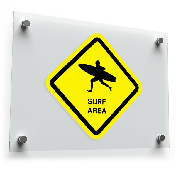Make your surfing zones stand out with this bold “Surf Area” sticker, designed for high visibility and durability. Featuring a bright yellow background and a black silhouette of a surfer in action, this vinyl decal is perfect for surf shops, vehicles, or beachside properties. Its weatherproof construction ensures long-lasting vibrancy and resistance to fading in outdoor conditions. Easy to apply with a simple peel-and-stick design, it adheres to smooth surfaces and removes cleanly without residue. Whether for safety or style, this sticker is a must-have for surf enthusiasts and beach lovers alike. Available in multiple sizes for your convenience.