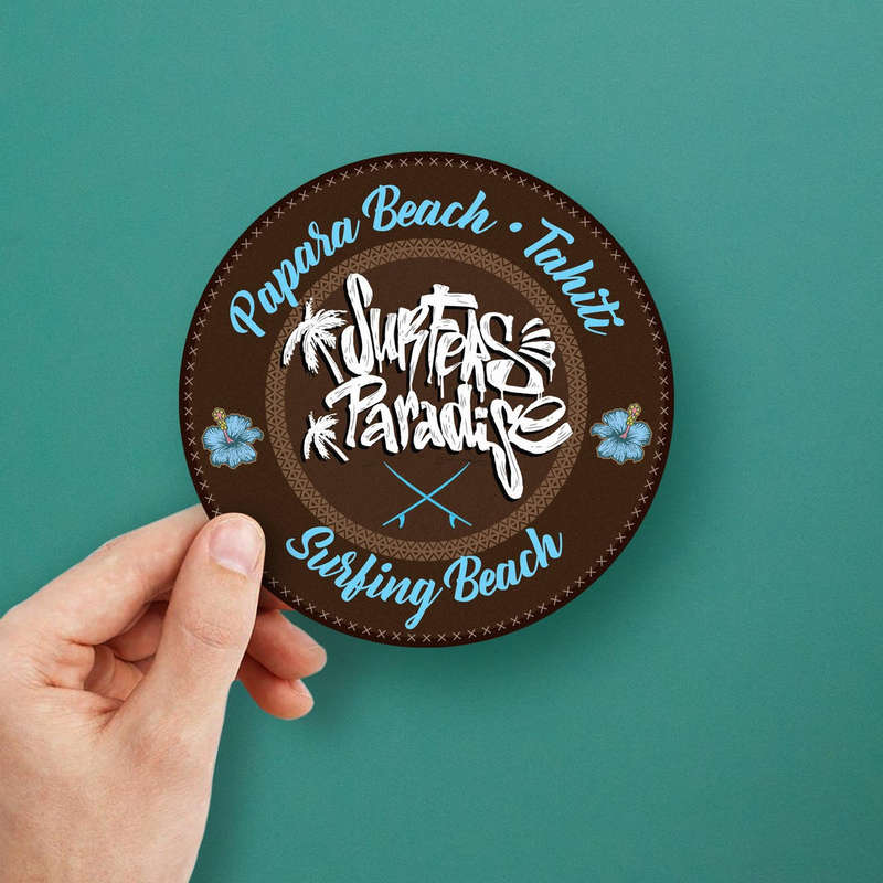 Bring the tropical charm of Tahiti’s Papara Beach into your life with this stunning “Surf Paradise” vinyl sticker. Featuring a bold round design with palm trees, surfboards, and vibrant blue accents, this decal is perfect for decorating laptops, car windows, or water bottles. Made from durable, weatherproof vinyl, it’s built to withstand the elements, ensuring vibrant colors and lasting quality for indoor or outdoor use. Whether you’re a surfer, traveler, or beach lover, this sticker is a stylish and meaningful way to celebrate your love for the ocean. Available in multiple sizes, it’s the perfect accessory or gift for tropical adventurers.