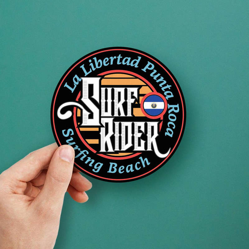 Surf Rider Vinyl Sticker 🏄 Celebrate Punta Roca Surfing: Represent the iconic La Libertad Punta Roca surfing beach with this bold “Surf Rider” sticker, featuring a retro design and the El Salvador flag for added flair. 🏄