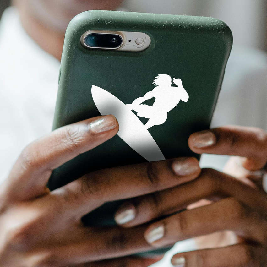 Dive into the surf culture with this bold surfer silhouette sticker, featuring a sleek black design that captures the energy and excitement of riding the waves. Perfect for cars, laptops, or DIY craft projects, this vinyl decal adds a touch of beach life to any surface. Made from durable, weatherproof vinyl, it resists fading and peeling for long-lasting performance indoors and outdoors. Available in multiple sizes, it easily fits your creative needs, from small personal items to larger surfaces like vehicles or surfboards. Effortless to apply and residue-free upon removal, this sticker is the perfect way to showcase your love for surfing and adventure.