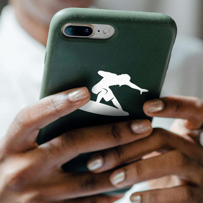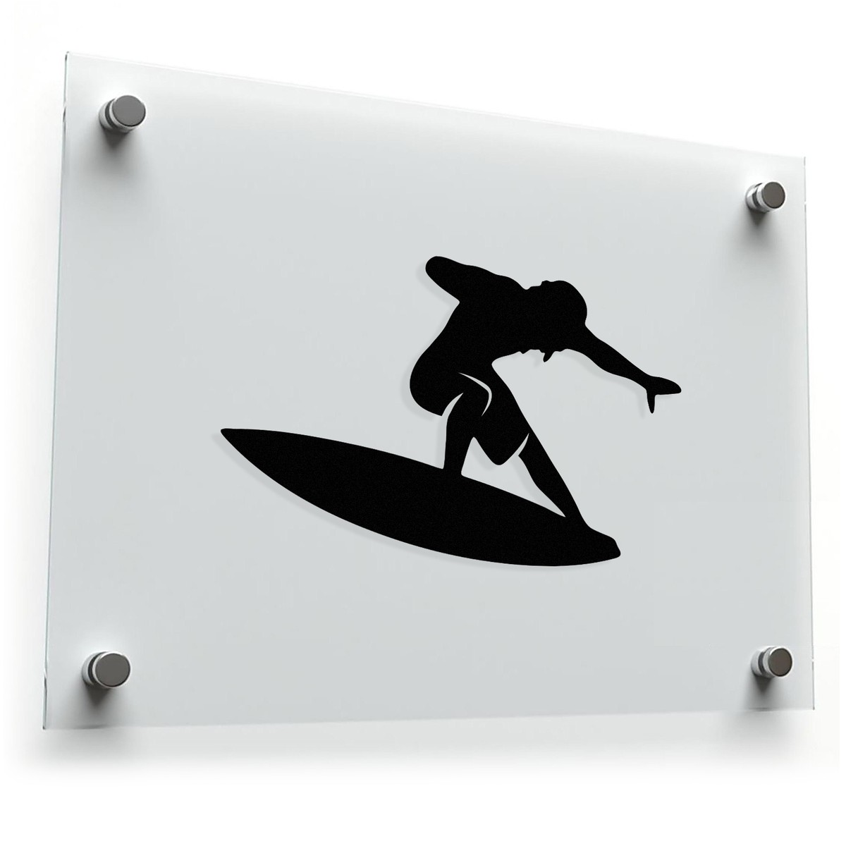 Celebrate the thrill of surfing with this dynamic silhouette sticker. Featuring a bold black design of a surfer in action, this vinyl decal brings a sporty and adventurous vibe to cars, laptops, or walls. Made from durable, weatherproof vinyl, it resists fading and peeling, ensuring long-lasting appeal for both indoor and outdoor settings. Its peel-and-stick application allows for quick and clean placement, offering flexibility for creative and temporary setups. Available in multiple sizes, this sticker is the perfect way to personalize your space and express your love for the ocean and adventure.
