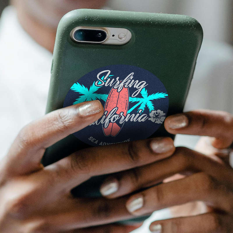 Bring the beach to your everyday life with this Surfing California Vinyl Sticker, a vintage-inspired decal that evokes the spirit of sea adventures and sunny days. Featuring bold typography, vibrant palm trees, and a classic surfboard, this high-quality vinyl sticker is both durable and waterproof, perfect for personalizing laptops, water bottles, or scrapbooks. Its easy-to-apply design leaves no sticky residue, making it a convenient way to showcase your love for California and surfing. Available in multiple size options, this sticker makes a fantastic gift for beachgoers, surfers, and fans of retro designs.