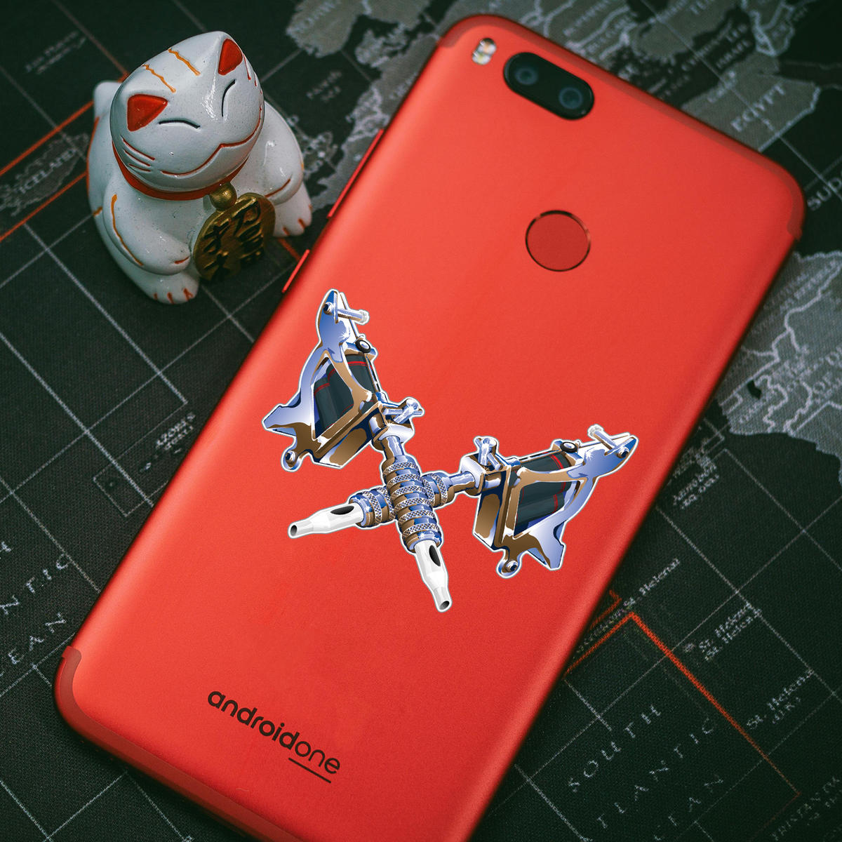 🖼️ Bold and Eye-Catching: Featuring a detailed tattoo machine design with vibrant metallic elements, this decal stands out, adding a professional yet artistic touch to your gear or workspace. 🖼️