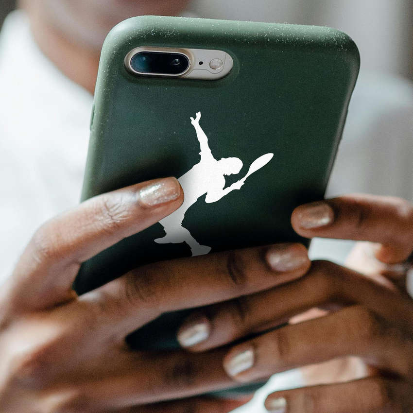 Show your love for tennis with this dynamic tennis player silhouette sticker. Featuring a sleek black design of a player mid-serve, this decal adds a bold and modern touch to your belongings. Made from durable vinyl, it resists fading, peeling, and damage, making it ideal for both indoor and outdoor use. Perfect for customizing cars, laptops, walls, or water bottles, this sticker adheres securely to smooth surfaces. Available in multiple sizes, it’s a versatile way to express your passion for the sport or to give as a gift to fellow tennis enthusiasts.