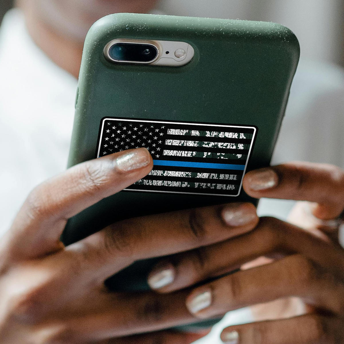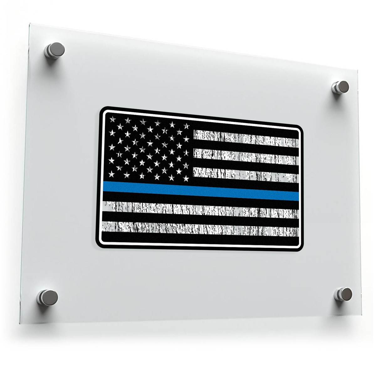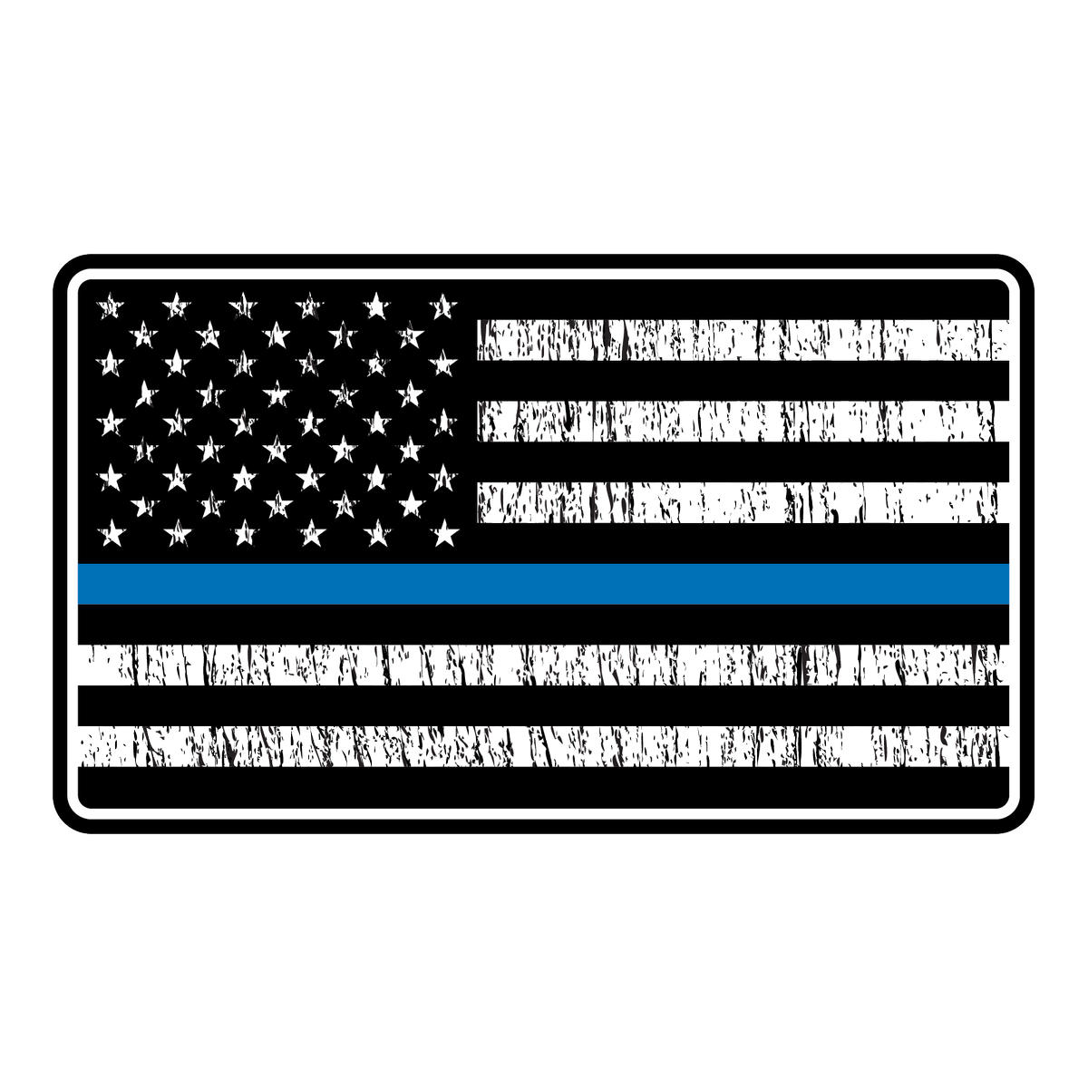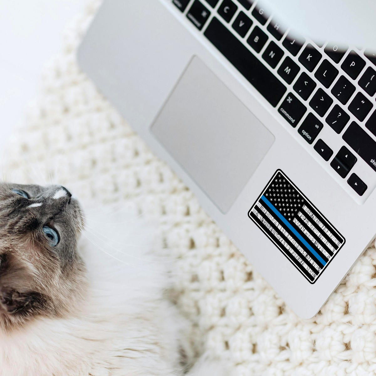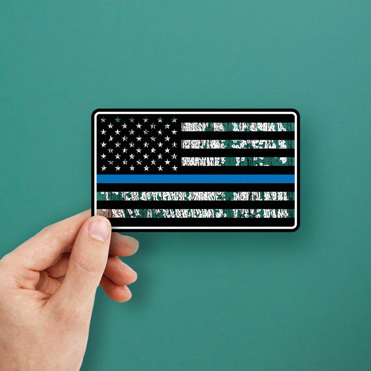 Show your support for law enforcement with this Thin Blue Line American Flag sticker. Crafted from durable, weatherproof vinyl, this decal is perfect for cars, trucks, laptops, and more. The distressed black-and-white flag design, with the symbolic blue line, proudly represents solidarity with police and first responders. It’s easy to apply to any smooth surface and can be removed without leaving behind any residue. Available in multiple sizes, this versatile sticker allows you to display your pride and support in a way that suits your personal style.