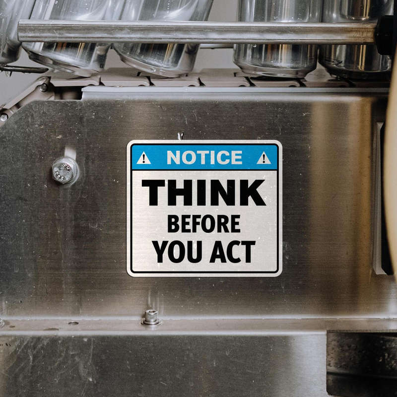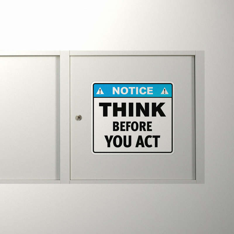 Foster a culture of safety and awareness with this “Think Before You Act” notice sign sticker. Featuring bold text and a striking blue and white design, this vinyl decal is highly visible and effectively communicates an important message in any workplace. Built with durable, weather-resistant material, it is perfect for indoor and outdoor use, ensuring longevity even in demanding environments. Its easy application and residue-free removal make it convenient for maintaining a safe and professional atmosphere. Ideal for office spaces, warehouses, or factories, this sticker is a practical addition to workplace safety protocols.