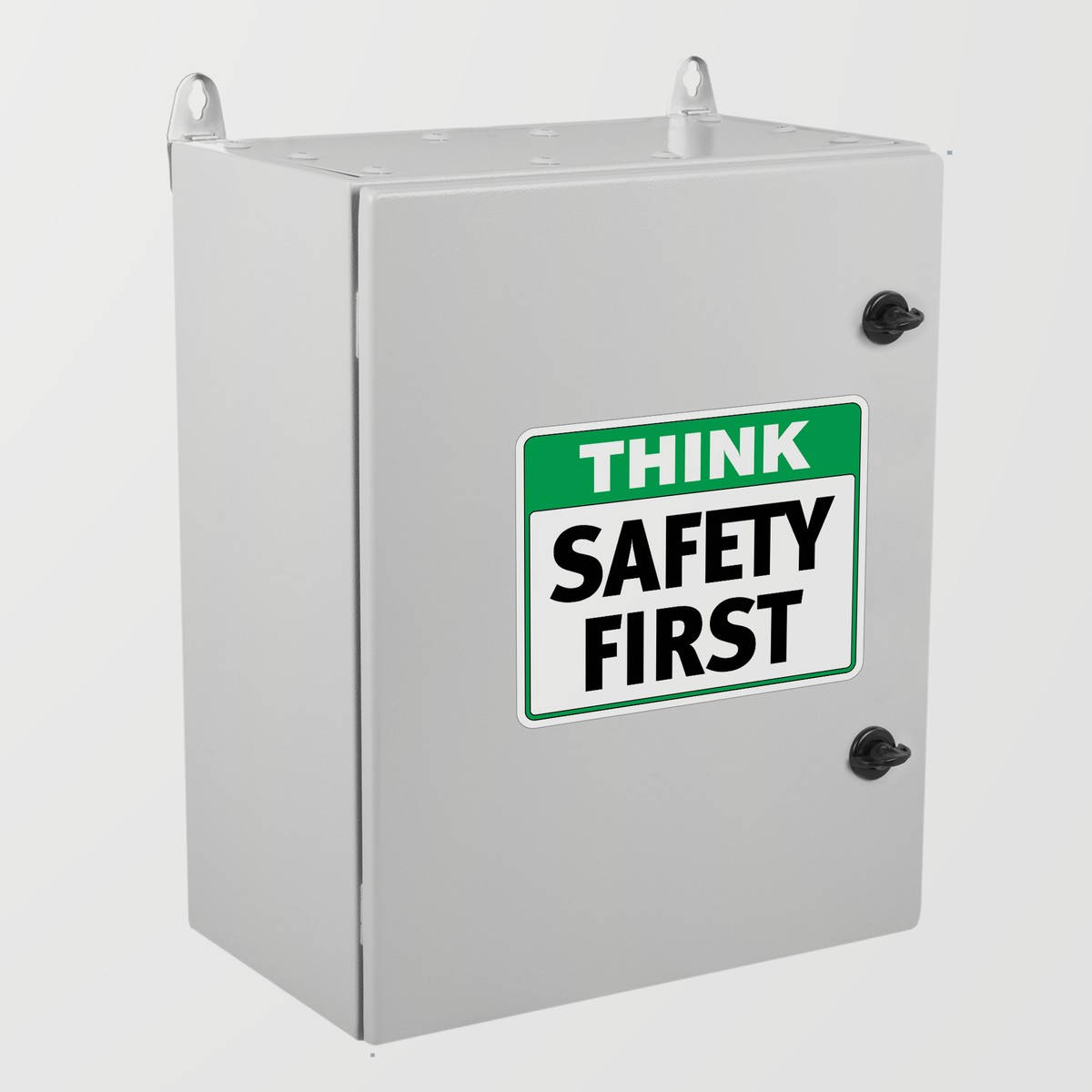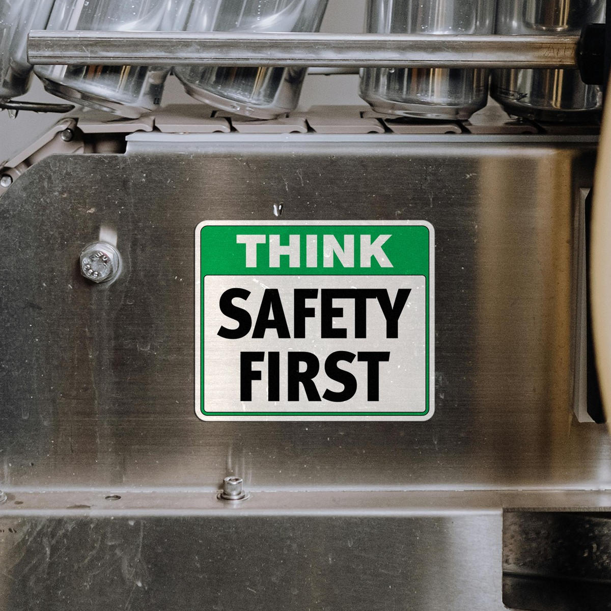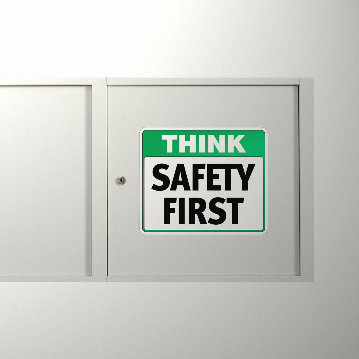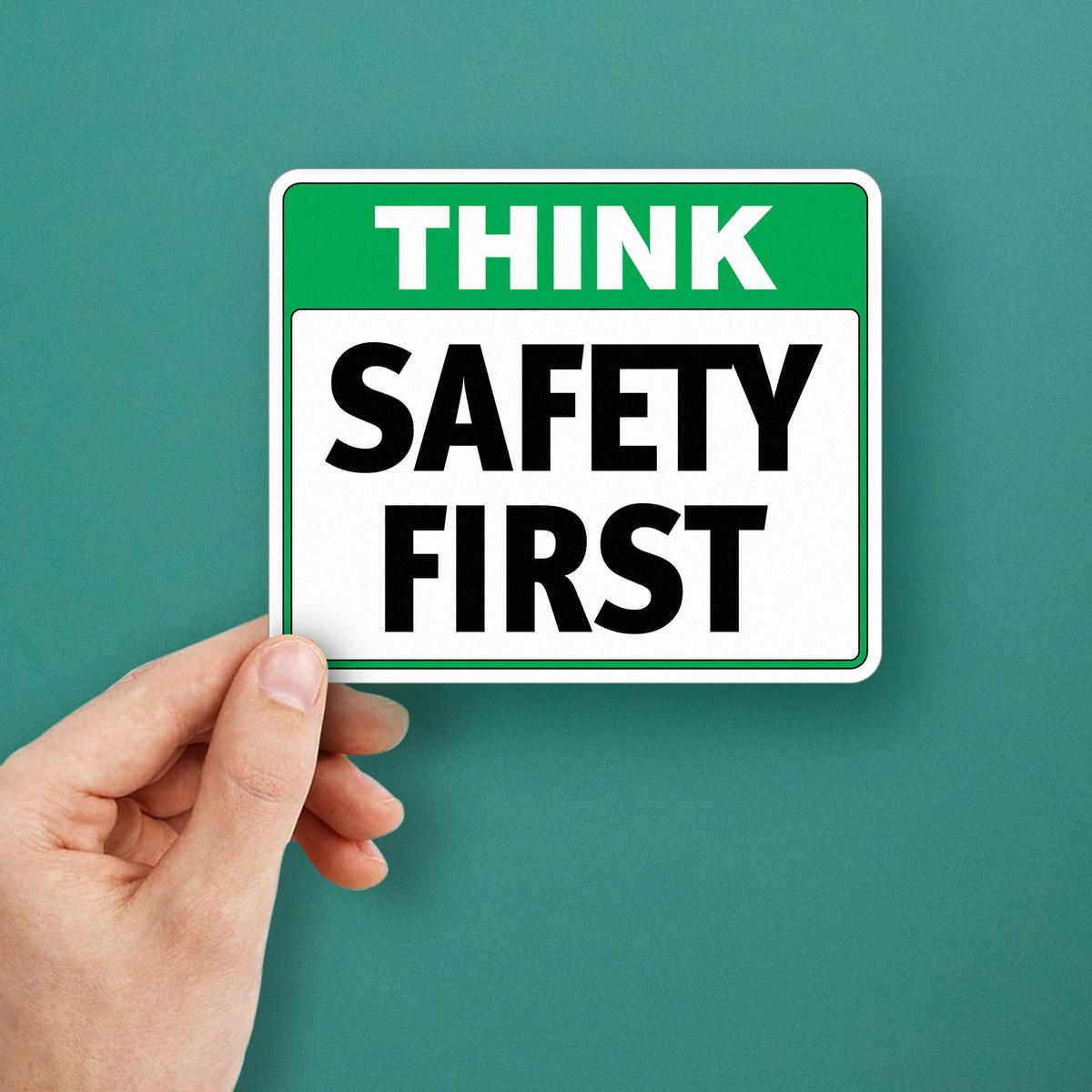 Think Safety First Sticker ⚠️ Bold Safety Reminder: This “Think Safety First” sticker promotes a culture of safety in the workplace, encouraging employees to prioritize safety in all tasks. ⚠️
