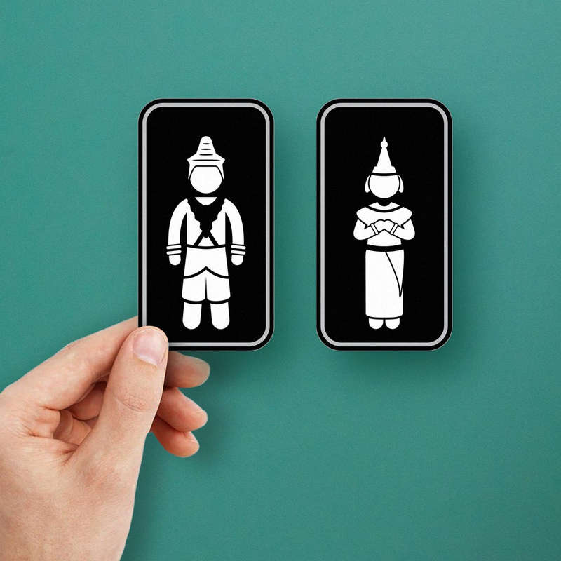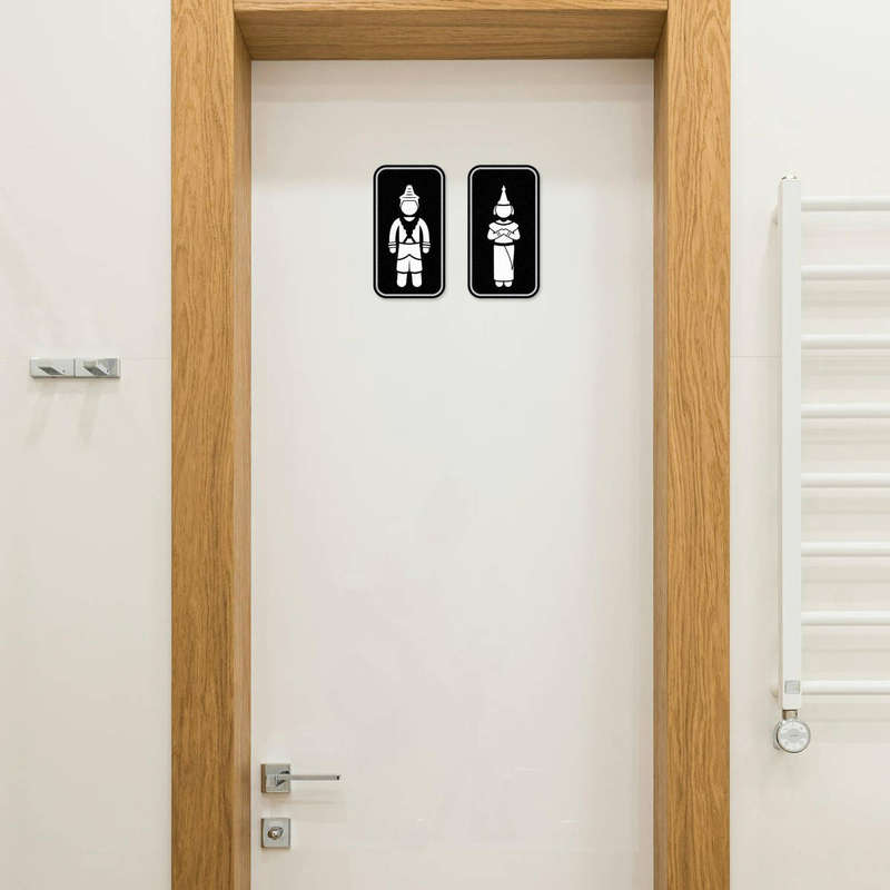 Bring a touch of Thai culture to your space with this traditional restroom decal set, featuring male and female symbols in classic Thai attire. The black and white design offers a high-contrast, sophisticated look that enhances the visibility of your restroom signs while adding a unique cultural flair. Made from durable vinyl, these decals resist fading and peeling, providing long-lasting quality whether used indoors or outdoors. Available in multiple size options, they are easy to apply and remove, allowing you to refresh your decor with ease. Perfect for adding both style and functionality to your bathroom decor.
