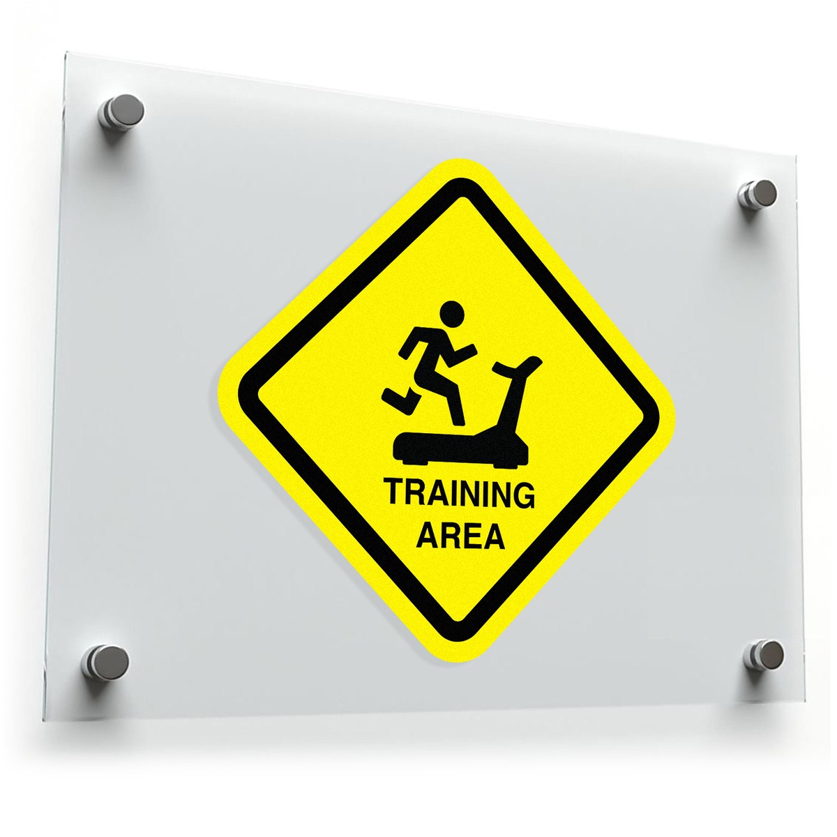 Training Area Warning Sign Sticker ⚠️ Clear Safety Message: Featuring a bold design of a running figure on a treadmill with the words “Training Area,” this sticker ensures high visibility and clear communication in fitness spaces. ⚠️