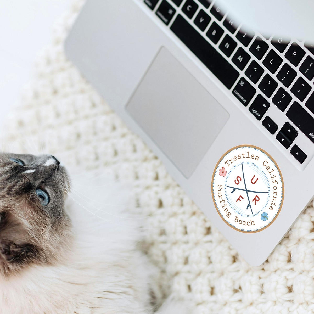 Capture the coastal charm of Trestles, California, with this vintage-inspired surfing beach sticker. Featuring a unique crossed surfboard design with “SURF” at the center, surrounded by hibiscus flowers, this decal embodies the laid-back spirit of the beach. Crafted from durable, waterproof vinyl, it’s ideal for outdoor use on water bottles, cars, and surfboards, or indoor decoration on laptops and notebooks. Easy to apply and remove, this sticker lets you showcase your love for California surf culture without hassle, making it the perfect addition for any beach enthusiast.