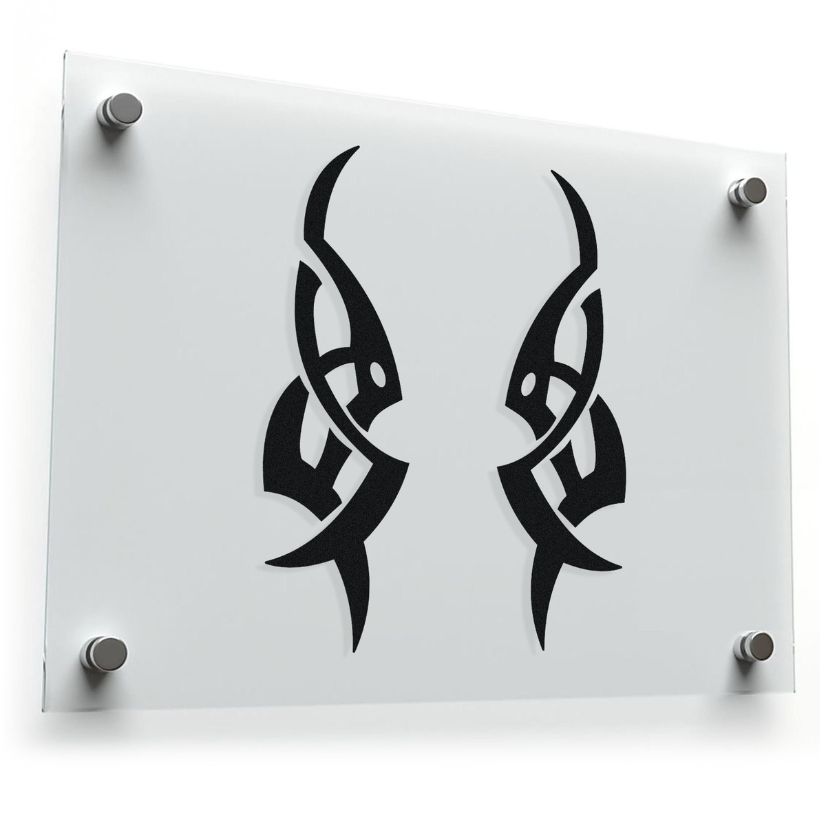 Add a touch of bold, aquatic style to your decor with this tribal fish decal set, featuring two intricate black silhouettes in a striking tribal design. Perfect for cars, laptops, walls, and more, these vinyl decals provide a unique aesthetic inspired by traditional tattoo art and marine life. Crafted from durable vinyl, they resist fading and peeling, making them ideal for both indoor and outdoor use. With easy application and residue-free removal, these decals offer flexible decorating options, and they’re available in multiple sizes to suit your needs and personal style.