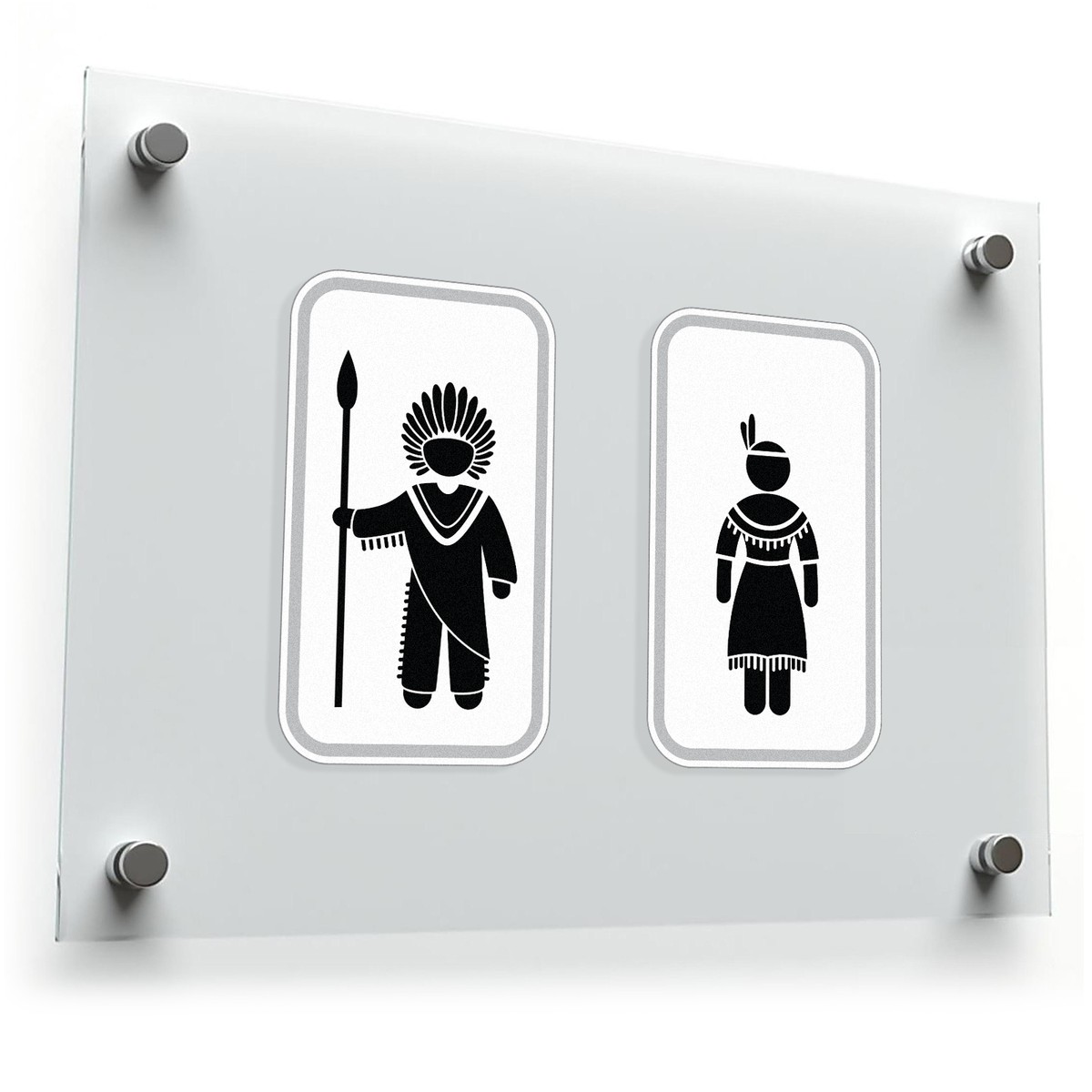 Tribal Icon Restroom Stickers 🪶 Tribal Restroom Icons: These Native American-themed restroom stickers bring a unique and cultural touch to your bathroom or door signs, ideal for homes or businesses. 🪶