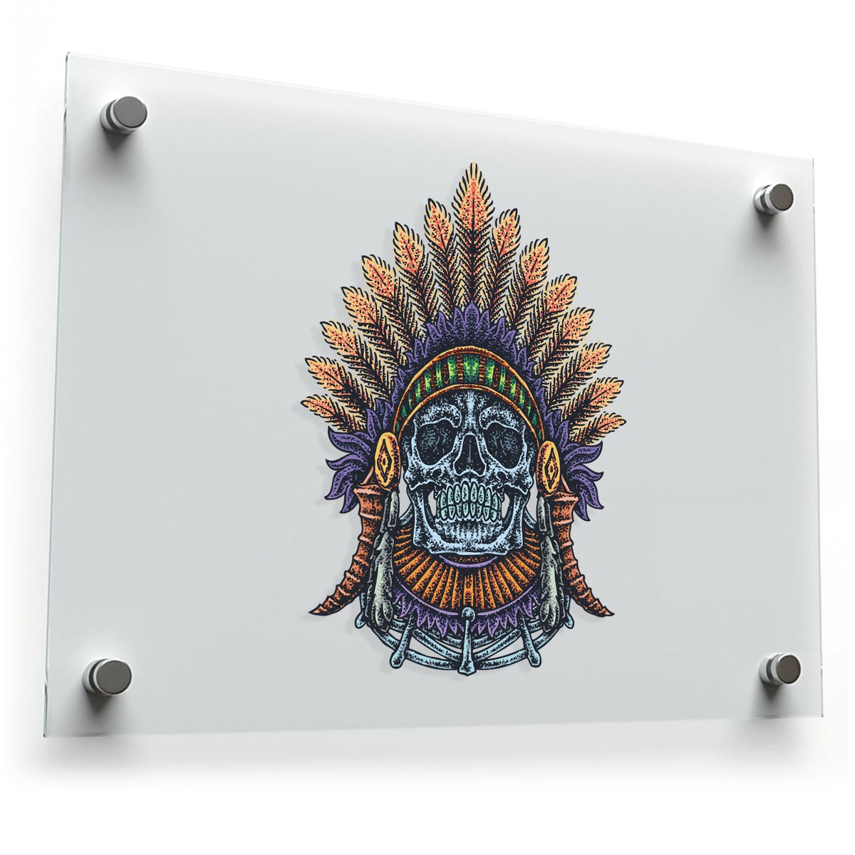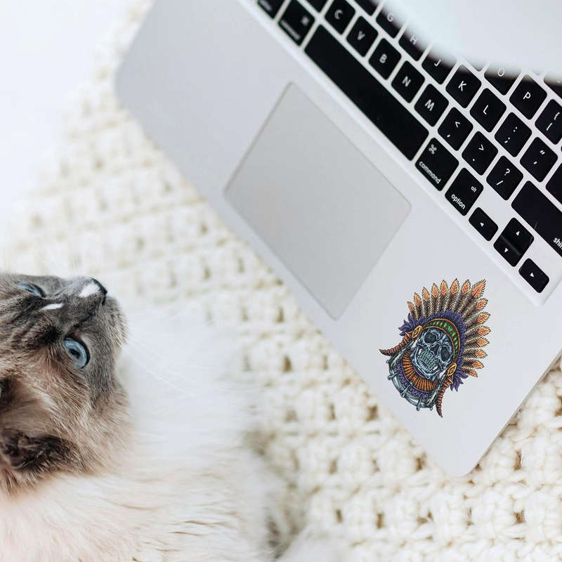 Tribal Skull Sticker 🌿 Vibrant Tribal Design: Featuring a detailed skull adorned with a colorful feathered headdress, this sticker blends tribal artistry with edgy gothic charm. 🌿