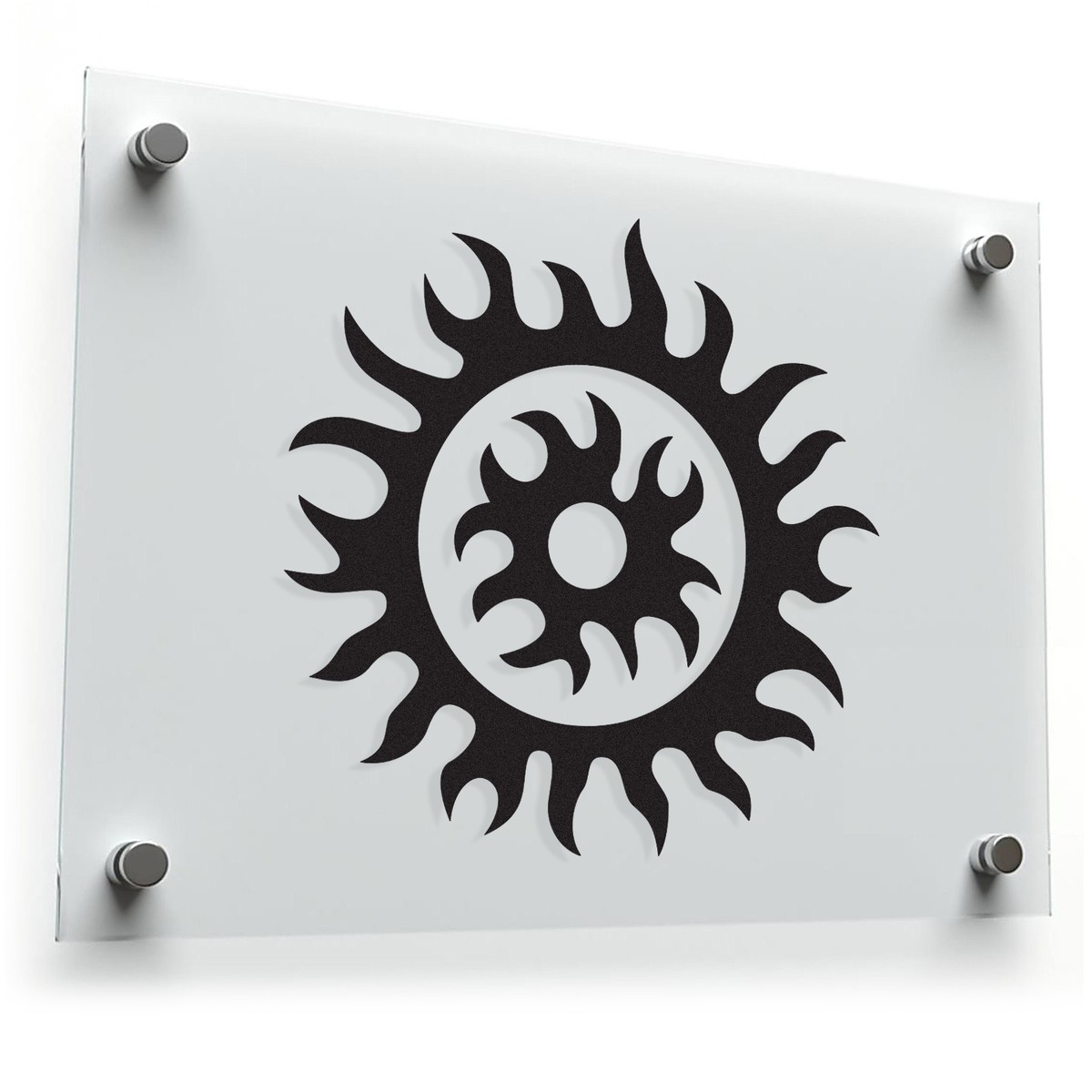 Make a bold statement with this tribal-inspired sun and gear decal, featuring a unique flaming silhouette that symbolizes energy and power. Perfect for decorating cars, laptops, walls, and more, this high-quality black vinyl sticker offers a striking design that stands out on any surface. Crafted to resist fading and peeling, it’s ideal for both indoor and outdoor use, and its easy application and residue-free removal make it a versatile decor choice. Available in multiple sizes, this decal allows you to bring a touch of tribal style to your favorite belongings, adding intensity and character to your space.