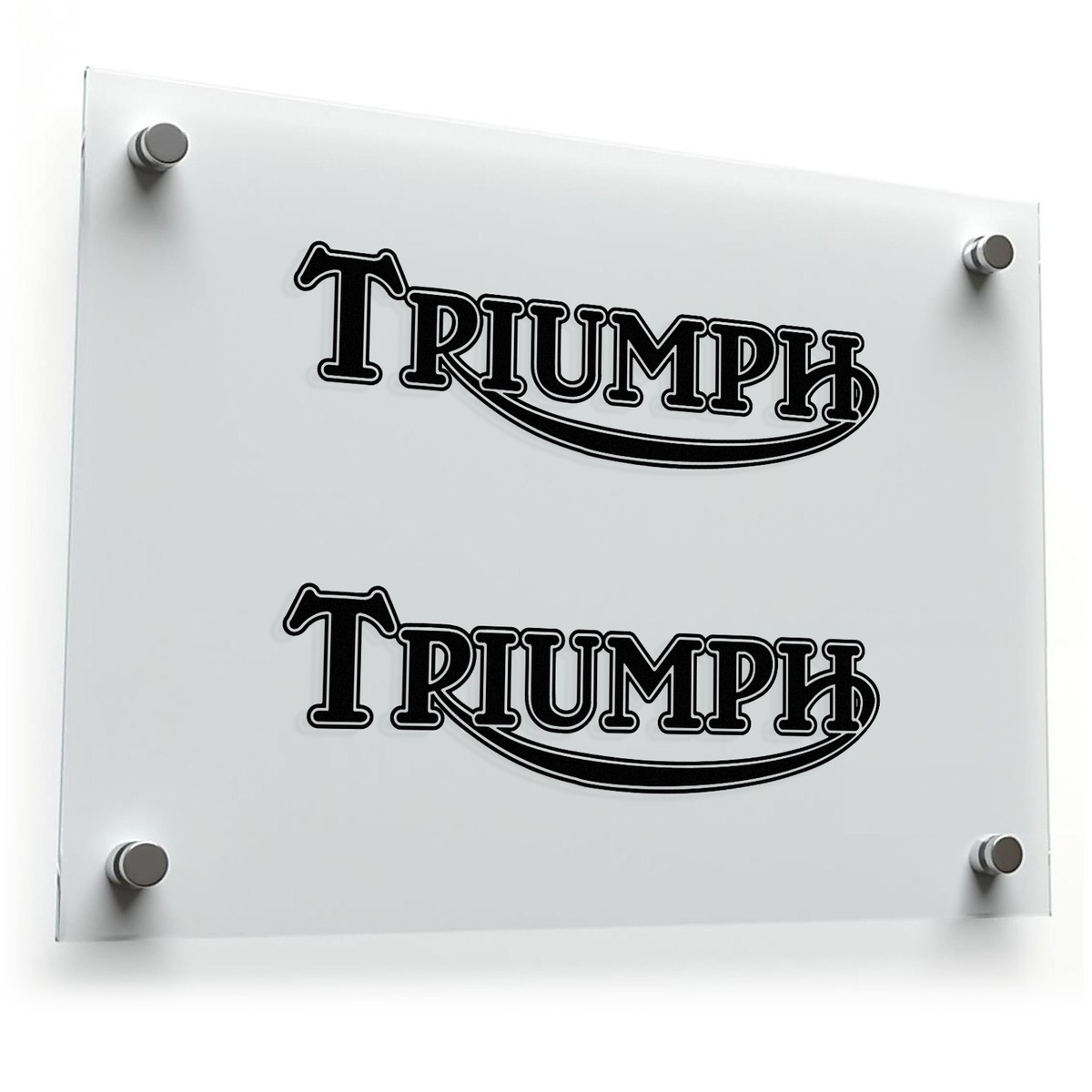 Celebrate the legacy of Triumph motorcycles with this set of two classic logo stickers, featuring a sleek black and white design that embodies timeless sophistication. Made from durable vinyl, these decals are perfect for personalizing motorcycles, cars, laptops, or any smooth surface. Their weatherproof construction ensures long-lasting vibrancy, even in outdoor conditions. Whether you’re a dedicated rider or a fan of the Triumph brand, these stickers let you add a bold and stylish touch to your gear. Easy to apply and remove without residue, they’re available in multiple sizes to suit your customization needs.