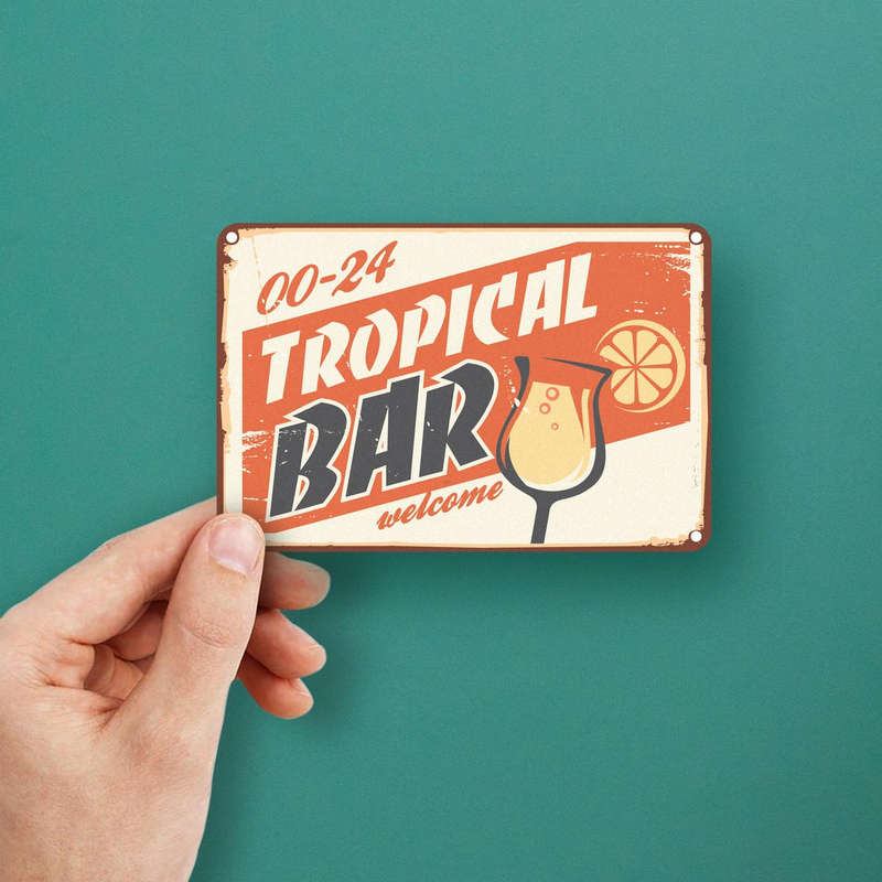 Transform your space with this Tropical Bar Welcome sticker, featuring a retro-inspired design with bold typography, vibrant orange tones, and playful cocktail imagery. Perfect for home bars, cafes, kitchens, or beach-themed settings, this decal adds a nostalgic charm that invites relaxation and fun. Made from durable fade-resistant vinyl, it ensures long-lasting use and vibrant colors, adhering securely to any flat surface without leaving residue. Whether you’re creating a cozy bar corner or enhancing your cafe decor, this sticker is a versatile and stylish addition. Available in multiple sizes, it’s the perfect way to infuse your space with tropical vibes.