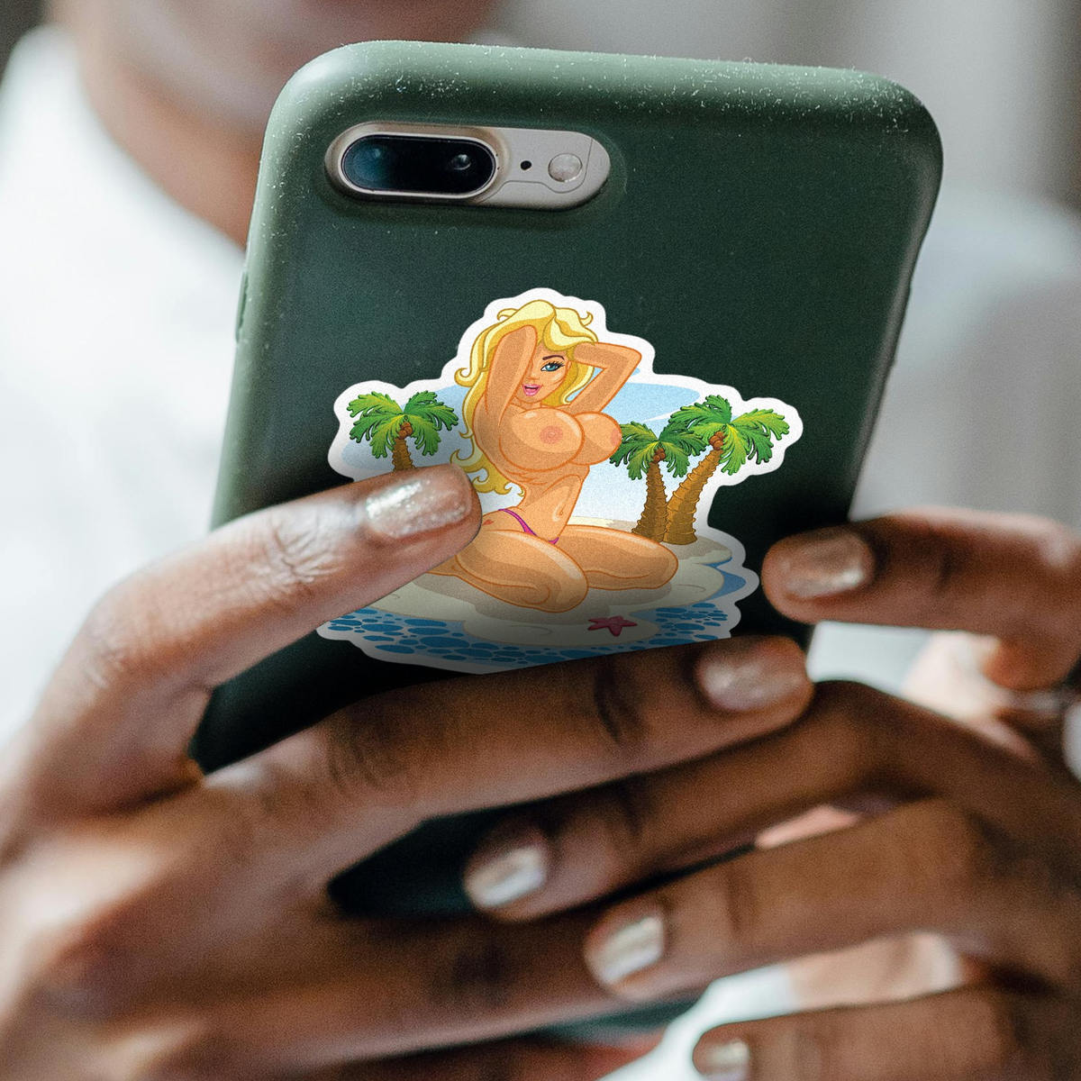 Add a playful, retro vibe to your summer with the ‘Tropical Island Pin-Up Girl’ sticker. Featuring a fun and vibrant design of a pin-up girl relaxing on a tropical island, this vinyl decal is perfect for decorating your laptop, car, or beach gear. Made from durable, waterproof vinyl, it’s designed to withstand outdoor elements while keeping its bright, colorful appearance. Whether you’re looking for a bold summer sticker or a fun way to add some retro flair to your belongings, this sticker is a perfect choice.