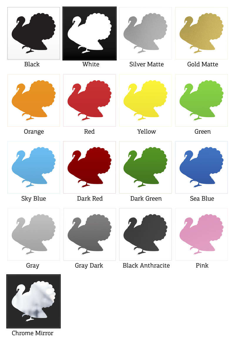 Celebrate the Thanksgiving season with this classic turkey silhouette vinyl sticker. Featuring a bold black turkey design, this durable, weatherproof decal is perfect for cars, laptops, water bottles, and more. Made from high-quality vinyl, it ensures long-lasting durability and vividness, even in outdoor conditions. Whether you’re decorating for the holidays or just love the timeless appeal of a turkey silhouette, this sticker is easy to apply and remove without leaving residue. Available in multiple sizes, it’s a versatile choice for adding a festive touch to any surface.