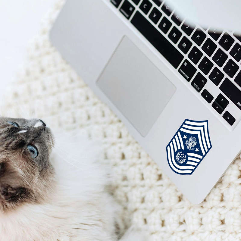 Honor the legacy of the US Air Force with this Senior Enlisted Leader insignia vinyl decal. Designed in a bold navy blue, this chevron-style emblem features stars and a distinctive military motif, representing leadership and dedication. Perfect for personalizing cars, laptops, or any surface, this durable vinyl decal resists scratches and fading, ensuring a lasting impression. With multiple size options available, it’s easy to find the perfect fit for your needs. Whether you’re showcasing your own service or supporting a loved one, this decal adds a meaningful and polished touch to your space or belongings.