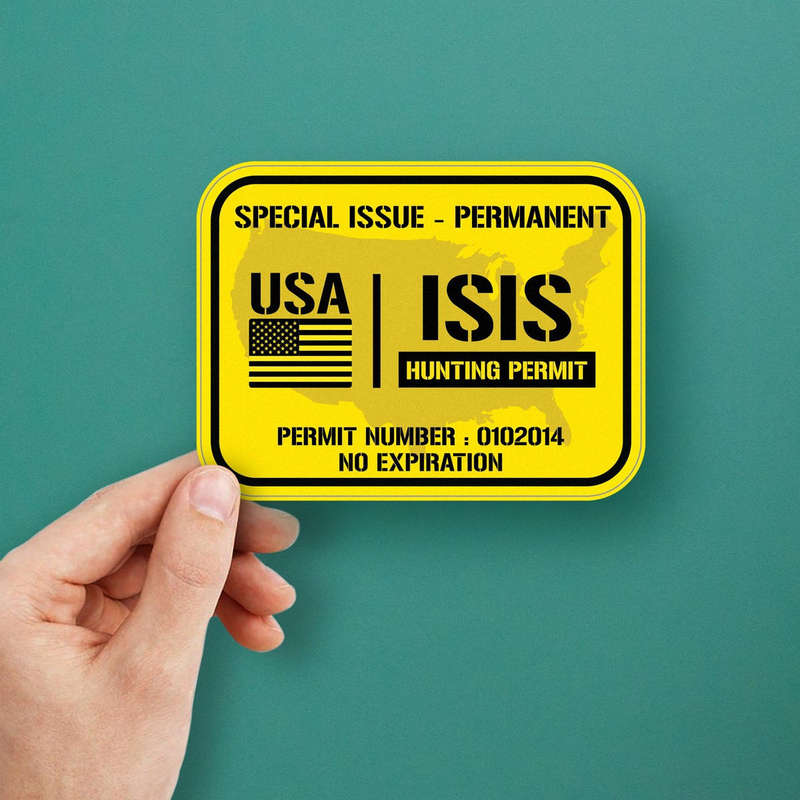 Make a bold statement with this USA ISIS Hunting Permit vinyl sticker, featuring a striking yellow and black design. Perfect for personalizing cars, trucks, toolboxes, or outdoor gear, this durable decal is crafted from premium vinyl to resist fading and peeling. Waterproof and weatherproof, it’s built to endure tough conditions, making it ideal for both indoor and outdoor applications. Easy to apply and remove, this sticker is perfect for collectors, patriots, or anyone looking to add a unique and rugged touch to their belongings. Available in multiple size options, it’s a standout addition to any collection.