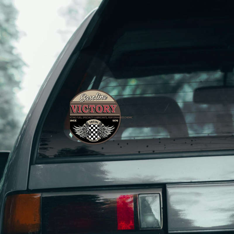 Rev up your style with this Victory Gasoline Engine vinyl sticker, featuring a vintage design with checkered flags, winged emblems, and bold “Since 1976” branding. This retro-inspired decal is perfect for celebrating motorsports culture and adds a touch of racing flair to your cars, toolboxes, fuel tanks, or garage walls. Crafted from durable, water-resistant vinyl, it ensures long-lasting performance and vibrant details. Easy to apply and remove, it offers a hassle-free way to personalize your belongings without sticky residue. Whether for your own collection or as a gift, this sticker embodies the spirit of racing and automotive excellence. Available in multiple size options to suit your needs.