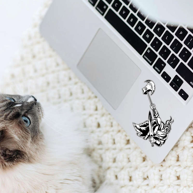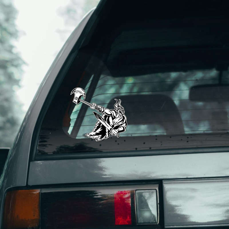 Unleash your inner warrior with this bold Viking warrior decal. Featuring intricate black and white artwork, this vinyl sticker brings the power and fearlessness of Norse mythology to life. Made from durable vinyl, it is designed for both indoor and outdoor use, making it perfect for cars, laptops, or home decor. Its weatherproof construction ensures long-lasting quality, even in harsh conditions. Easy to apply and remove without leaving residue, this decal is a must-have for any fan of Vikings or bold, artistic designs. Available in multiple sizes to suit your needs.