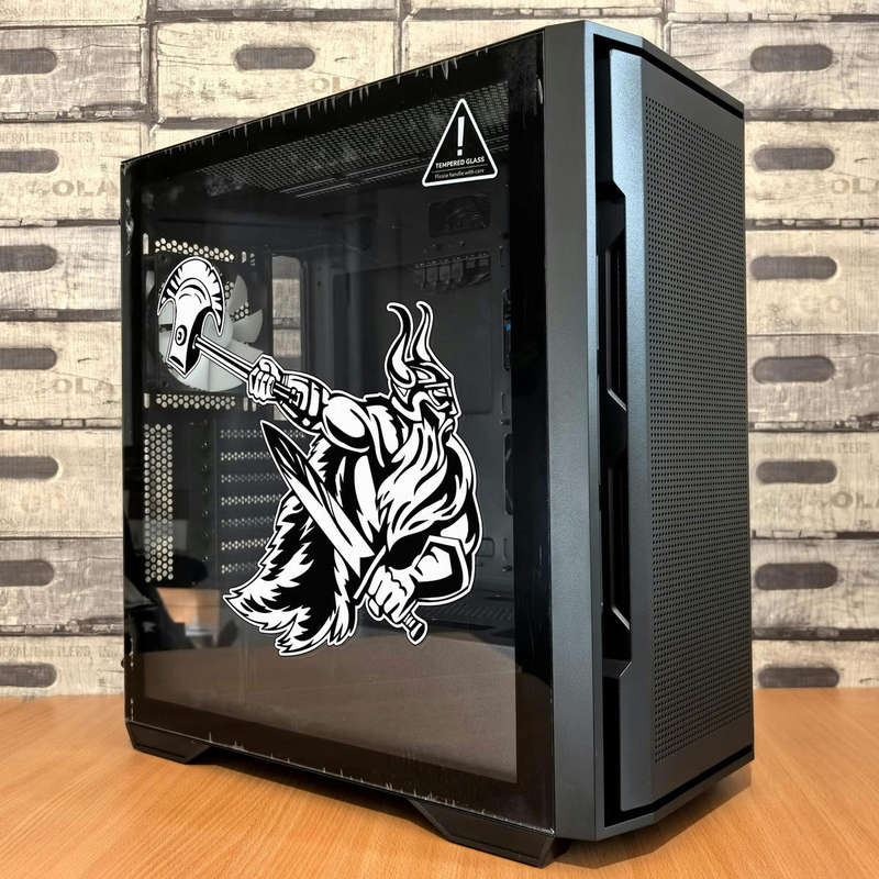 🎨 Intricate Artwork: The detailed linework of the Viking warrior, complete with axe and sword, brings a bold, artistic edge that stands out wherever it’s placed. 🎨