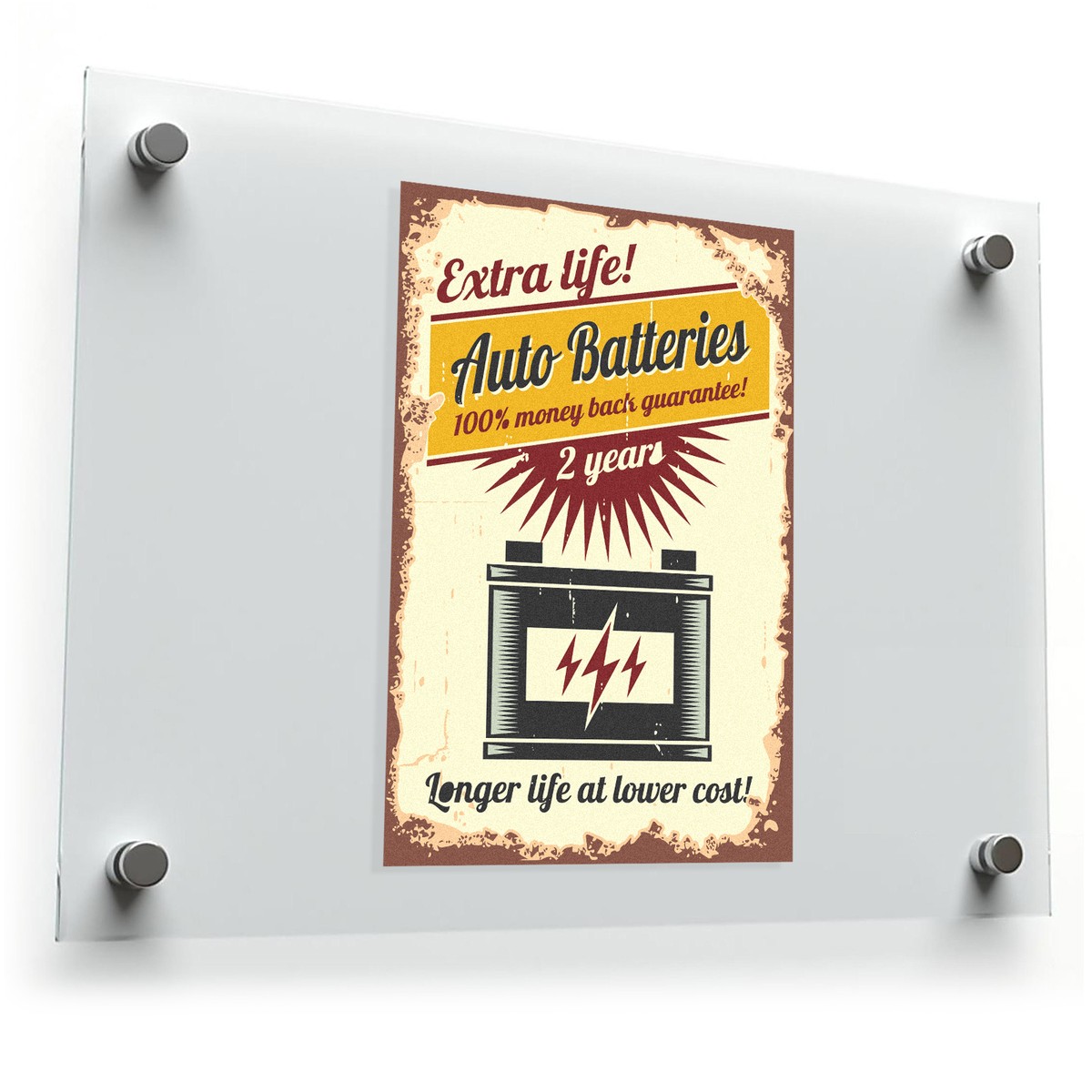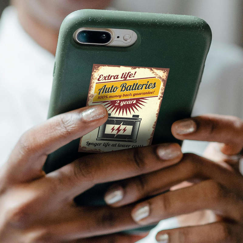 Bring a touch of retro charm to your space with this vintage auto batteries poster sticker, showcasing bold typography, classic battery graphics, and a nostalgic color scheme. Perfect for decorating garage walls, cars, toolboxes, or laptops, this versatile decal enhances any surface with its vintage automotive vibe. Made from durable vinyl, it resists fading, peeling, and wear, ensuring its bold design remains intact indoors and outdoors. The detailed retro graphics and high-quality material make it a standout decorative choice for automotive enthusiasts. Easy to apply and remove without residue, this sticker is available in multiple sizes to fit your decor needs.