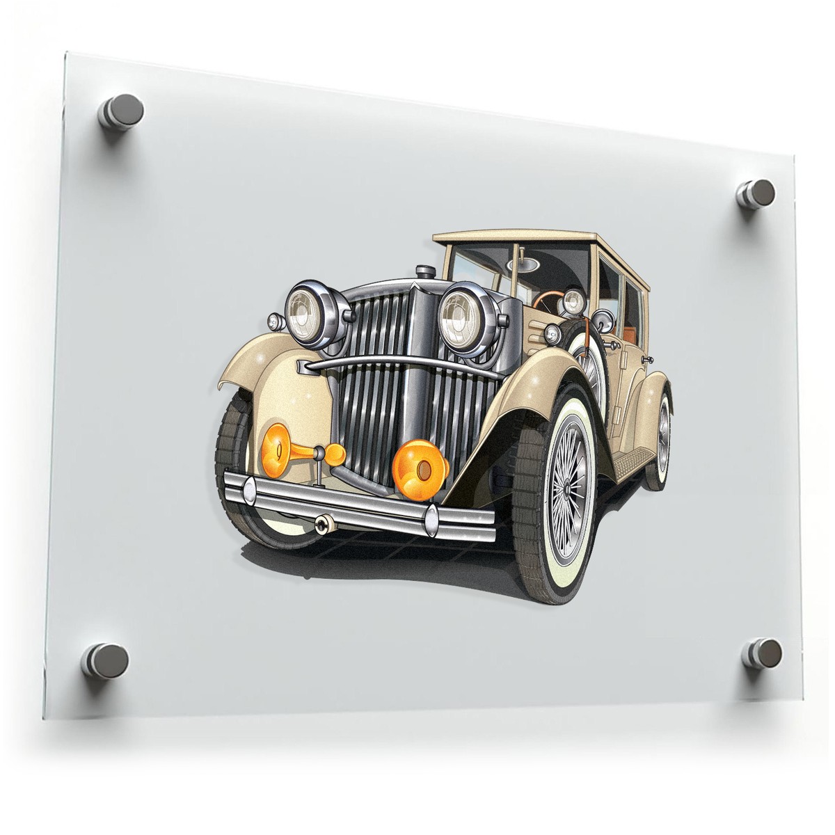 Celebrate the golden age of automobiles with this vintage classic car sticker, featuring a beautifully detailed beige sedan. Its retro design, complete with intricate detailing and bright yellow headlights, adds an elegant touch to any surface. Made from high-quality, weatherproof vinyl, this decal is built to withstand outdoor elements while preserving its vibrant colors. Easy to apply and remove, it adheres perfectly to cars, laptops, walls, or any smooth surface, making it a versatile addition to your decor or collection. Whether for personal use or as a thoughtful gift for car enthusiasts, this sticker combines style, durability, and timeless appeal.